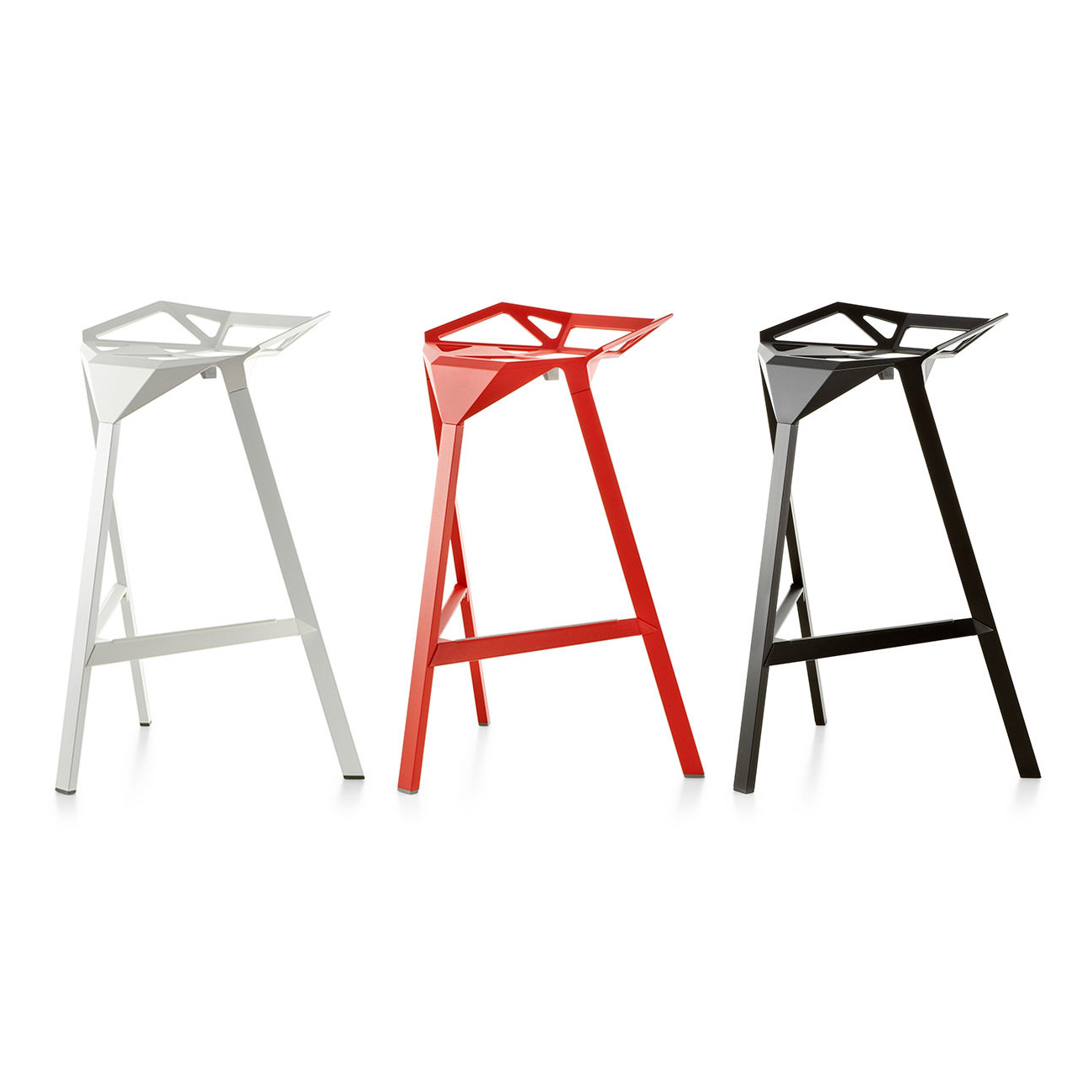 Stool One er designet av Konstantin Gricic i 2006 – Inspirasjonen til Gricic er hentet fra amerikanske stealth jagerfly og gir de luftige stolene er maskulint og tøft uttrykk. Åpenheten i materialet gir stolen en utrolig letthet som gjør at serien kan integreres i de fleste moderne miljøer. Barstolene er også stablebare.