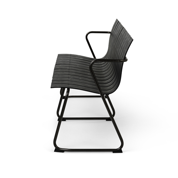 Sort: Resirkulert fiskegarn og resirkulert hardplast. En Ocean benk sikrer planeten på 3120g plastavfall.