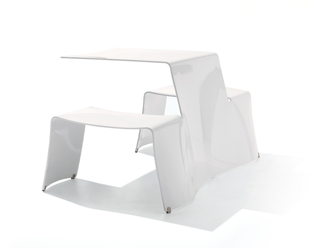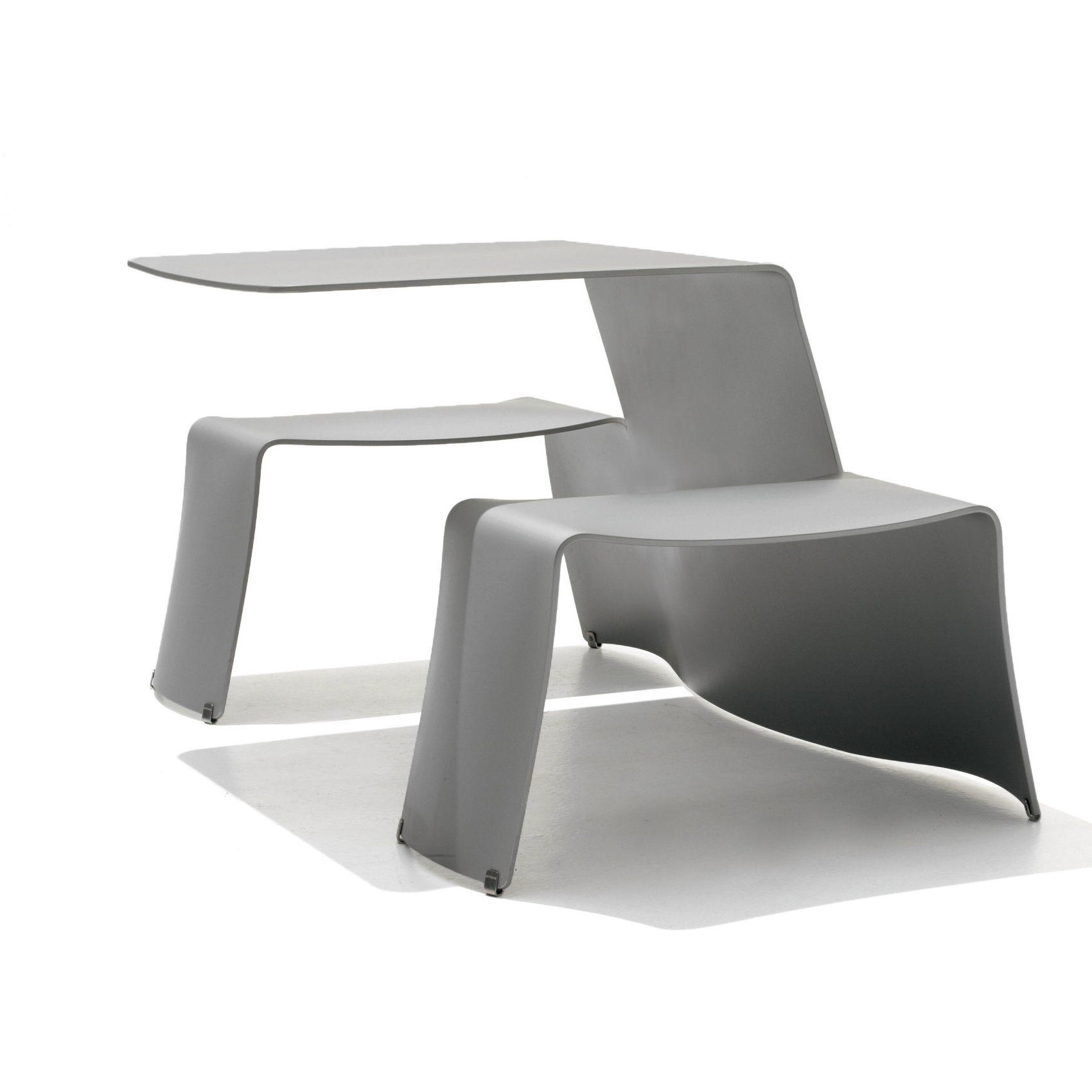 Et bord for to – er faktisk mye mer enn bare et bord med plass til to personer. Picnik var først og fremst utviklet som et bord og benk kombinasjon for små uterom . Men takket være sin slående utseende – er det både solid og stilisert på samme tid. Picnik er også ofte brukt innendørs. Kombiner flere Picnik i flere grupper i og det skaper en nesten kunstnerisk effekt . Materialet som brukes er aluminium, som er lett, robust, og 100 % resirkulerbart . Det finnes flere innendørs og utendørs versjoner tilgjengelig . Den pulverlakkerte versjonen (6 farger) kan brukes både innendørs og utendørs; høyglanset versjon er tilgjengelig i alle farger på forespørsel (kun for innendørs bruk ) .Picknic kan boltes til underlaget.