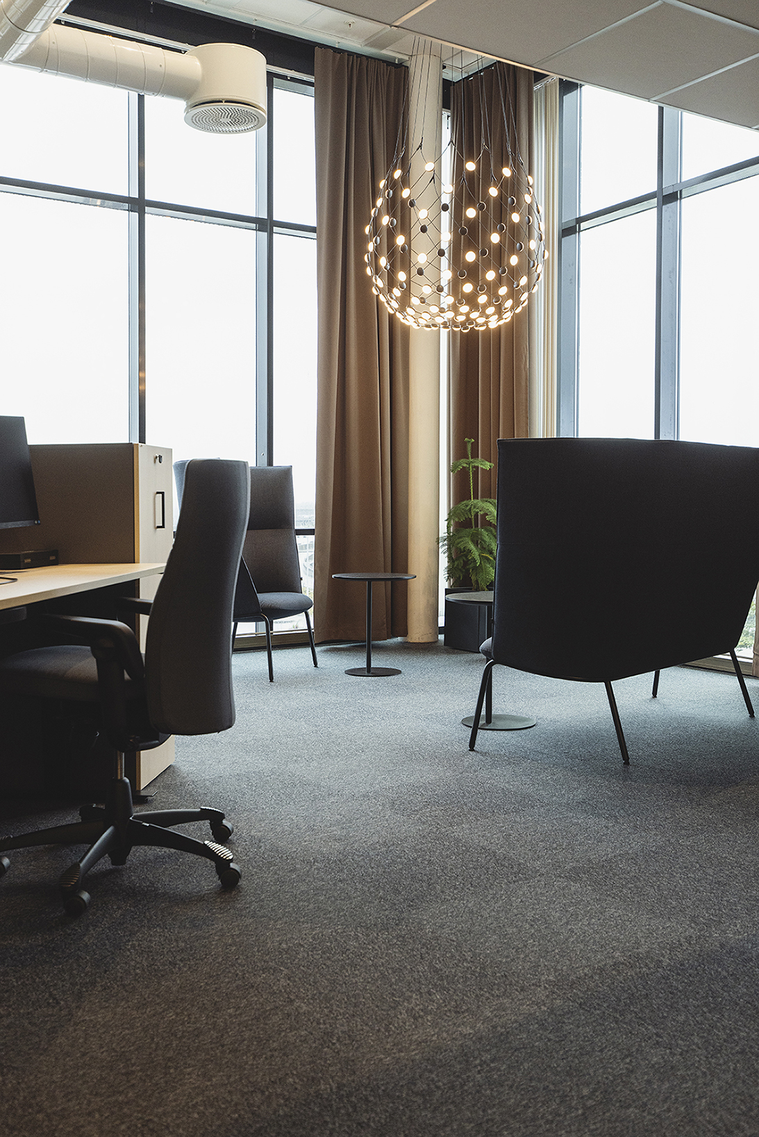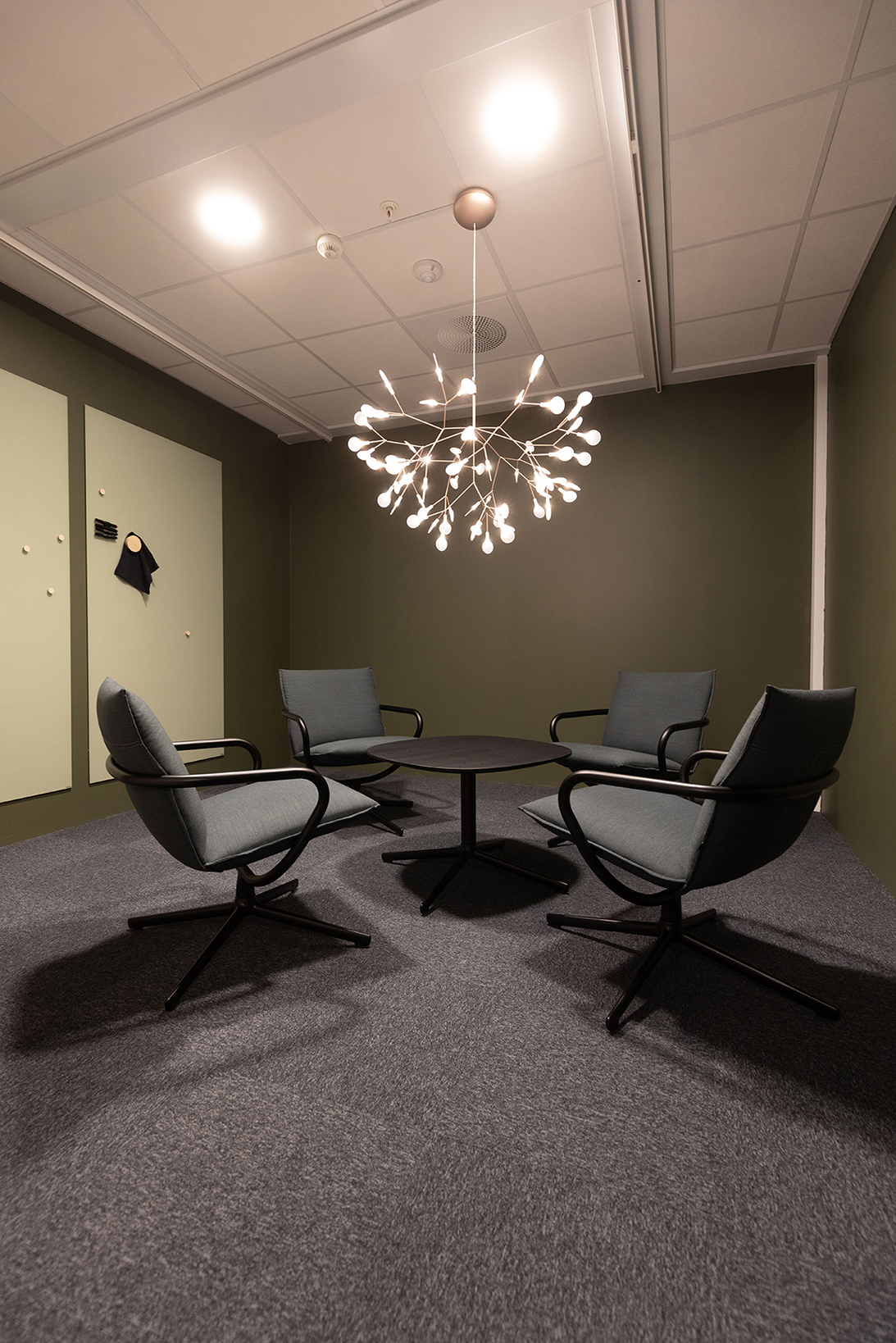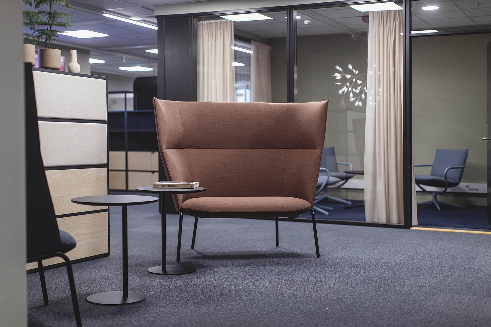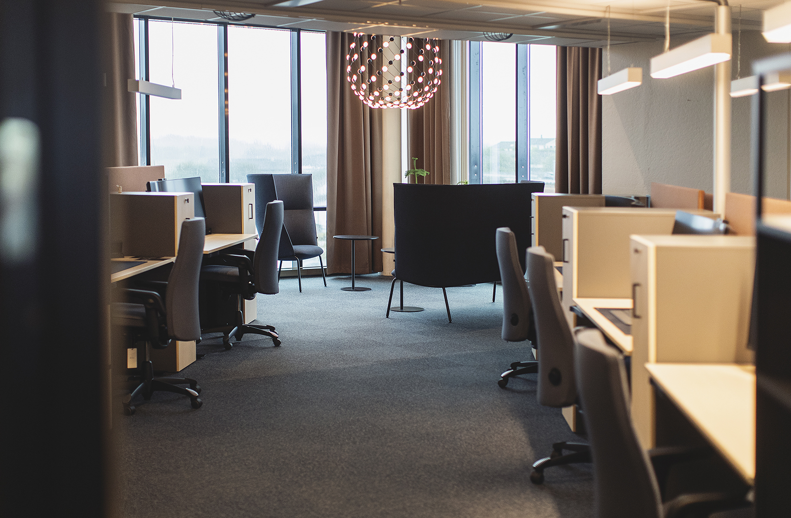 Deres ønske var å formidle fargene og stemningen i bildet inn i kontorlandskapet. De hadde også et ønske om å bruke nordiske leverandører.