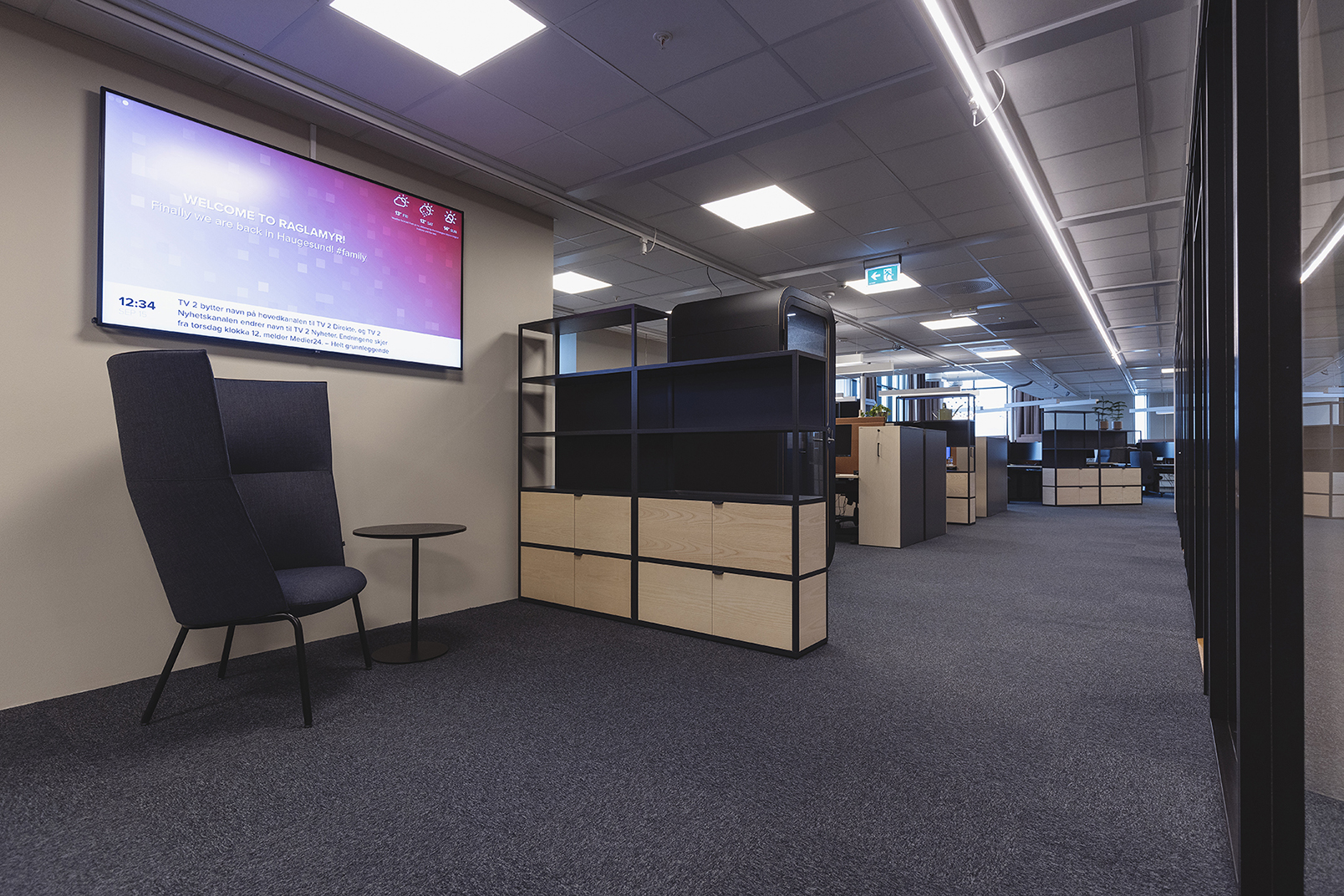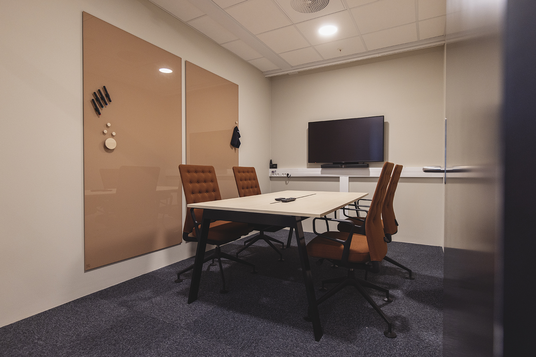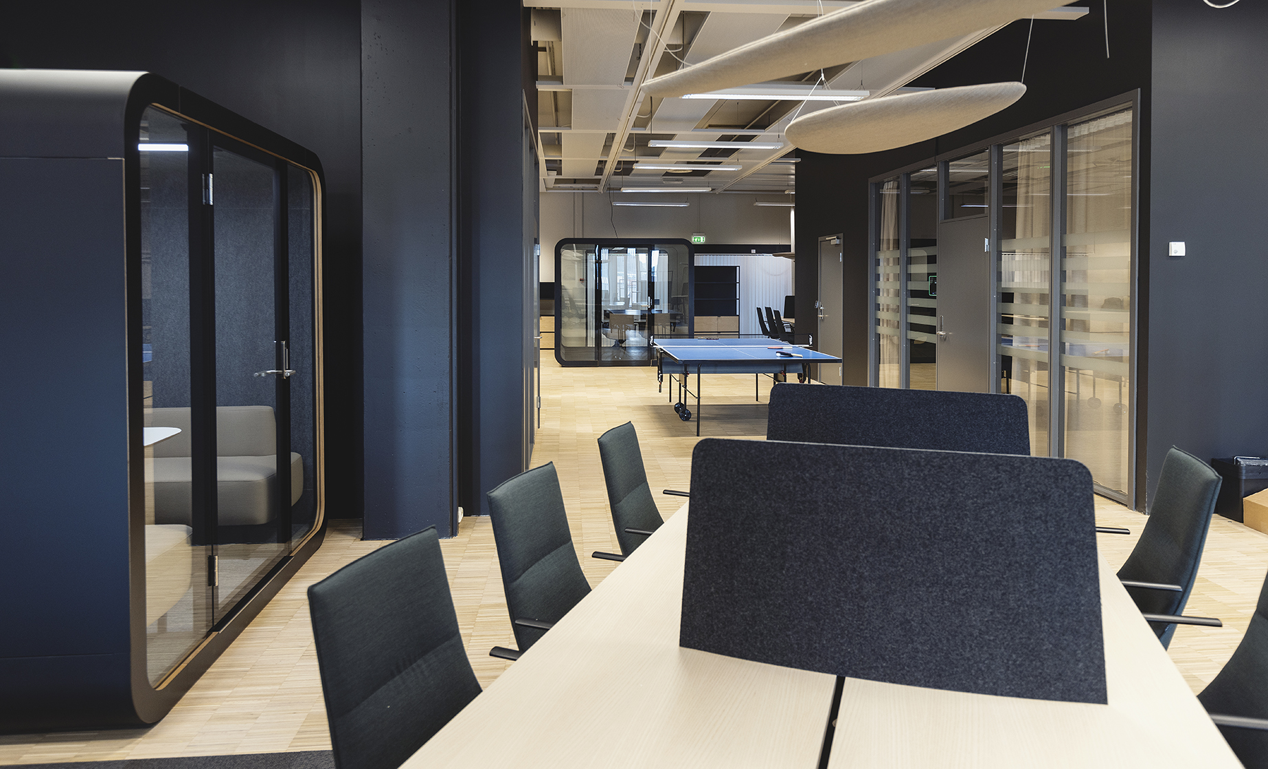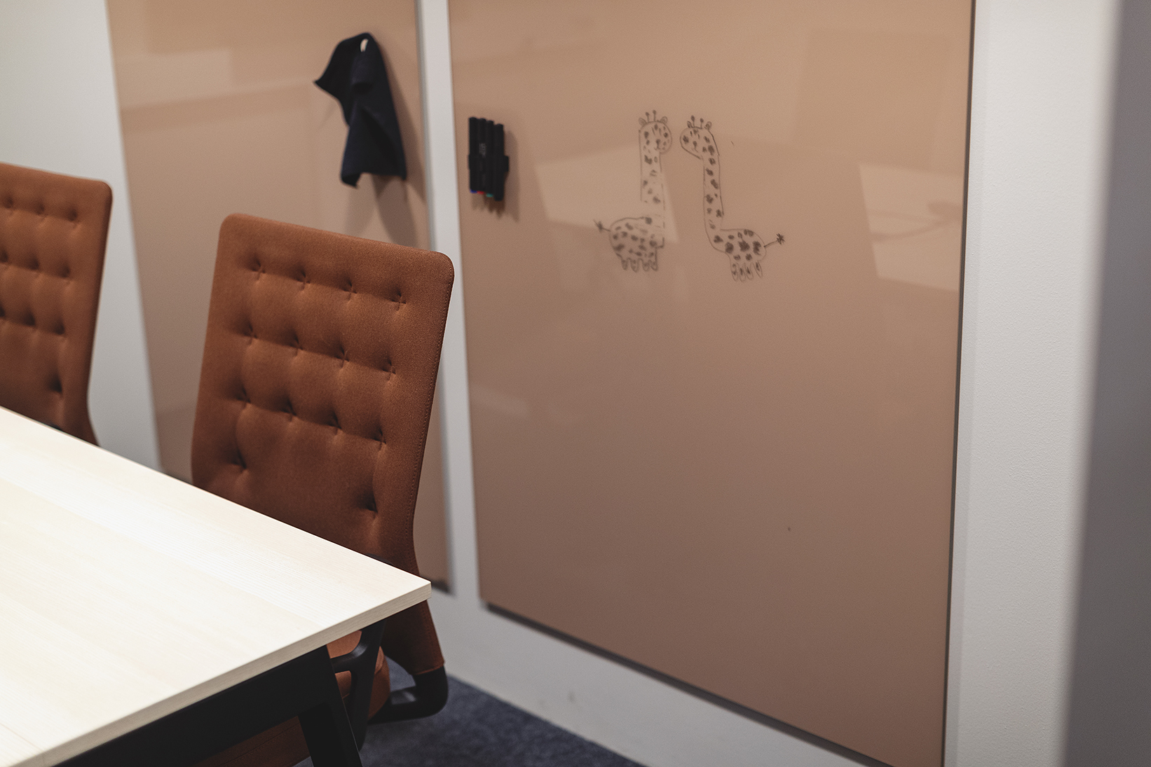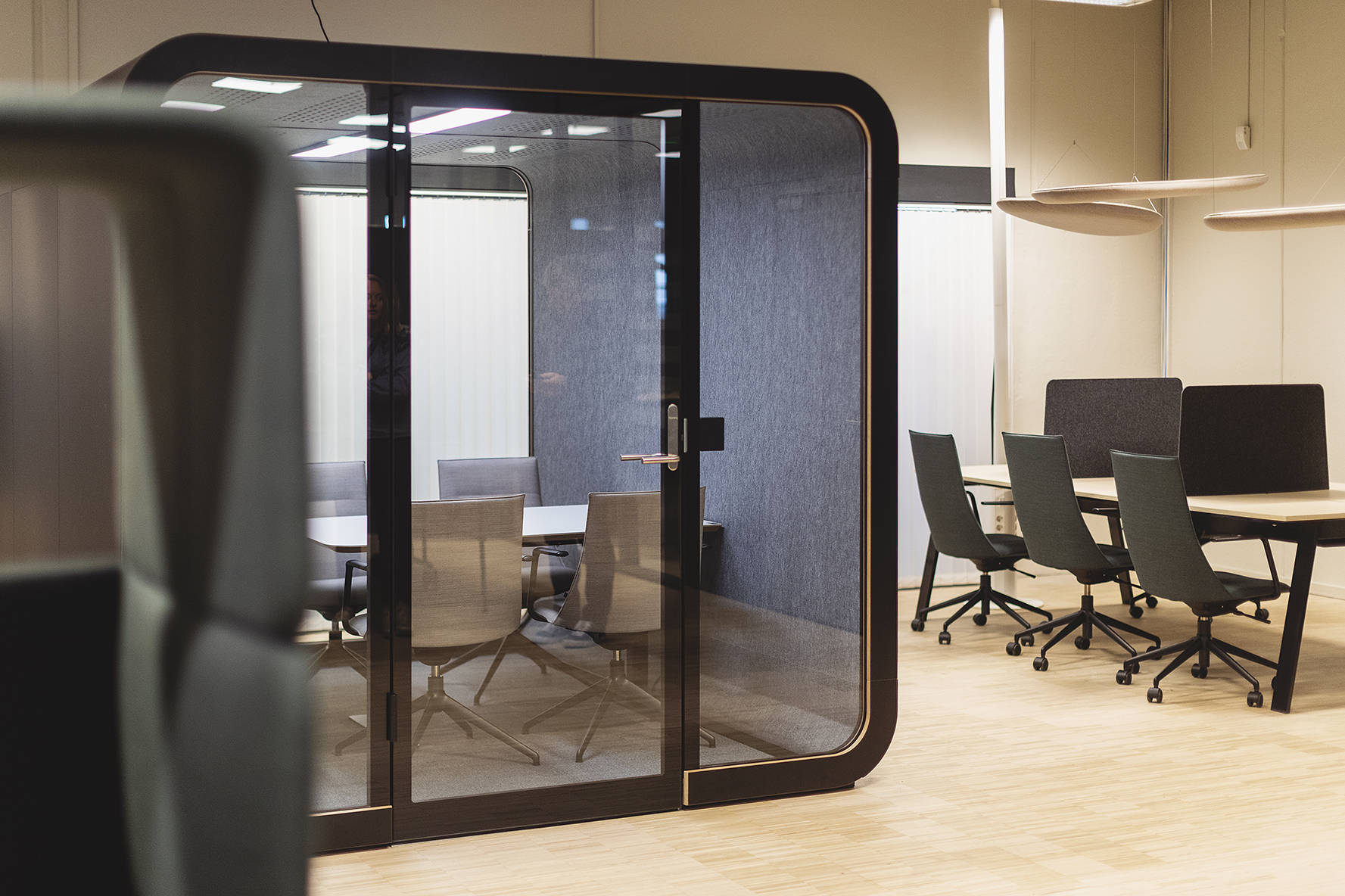 Deres ønske var å formidle fargene og stemningen i bildet inn i kontorlandskapet. De hadde også et ønske om å bruke nordiske leverandører.