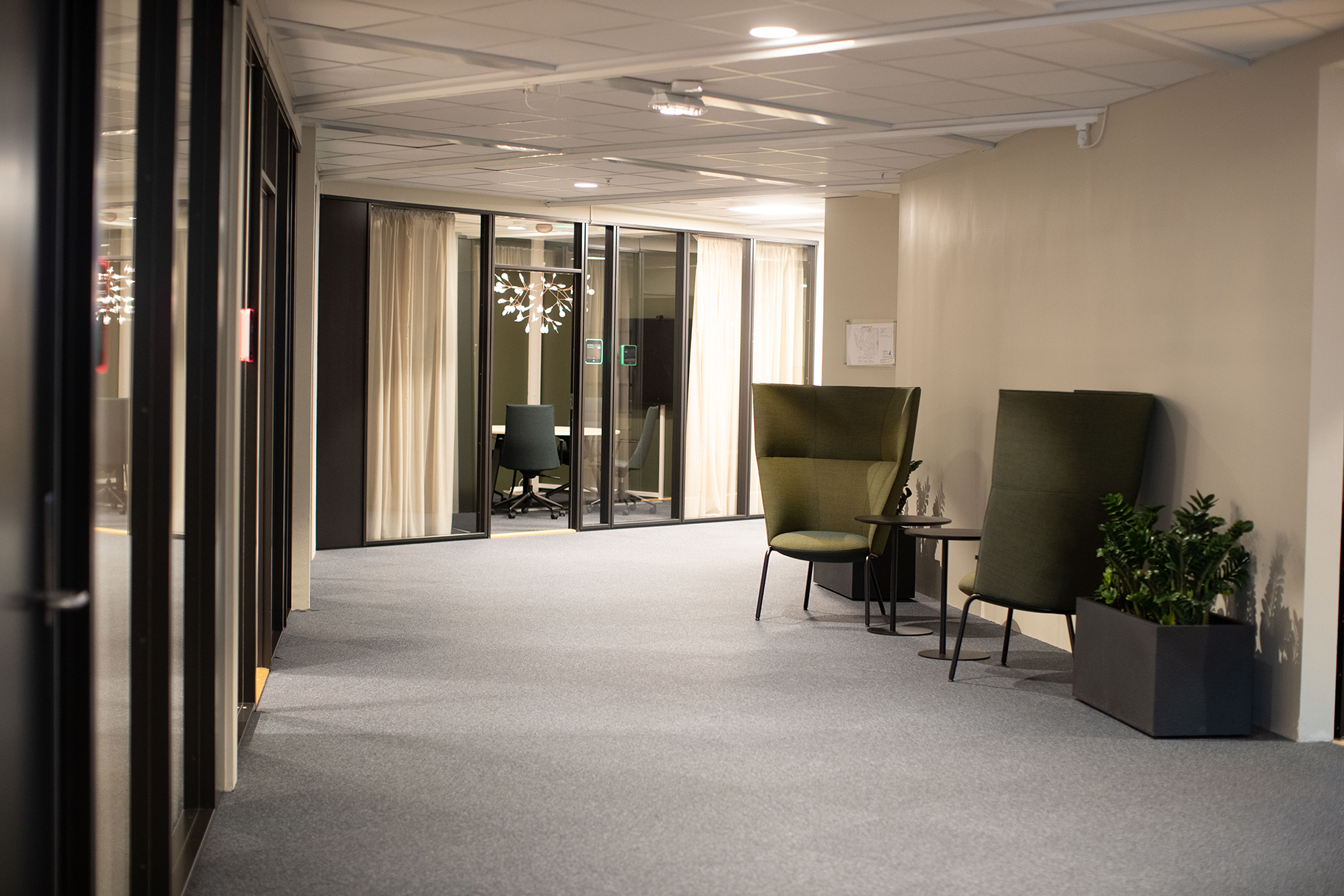 I dette prosjektet har vi i godt samarbeid med kunden fått bidratt med alt fra A-Å. Alt fra utvelgelse av farger på vegger, plassering av belysning, tepper og plassering av møbler. Hovedfokus ble på lys ask og duse fargetoner i blå, grønn og rosa. Lokalene har Senab Eikeland innredet med møbler fra bl.a. Fora Form, Edsbyn, Håg, Vitra og Framery.