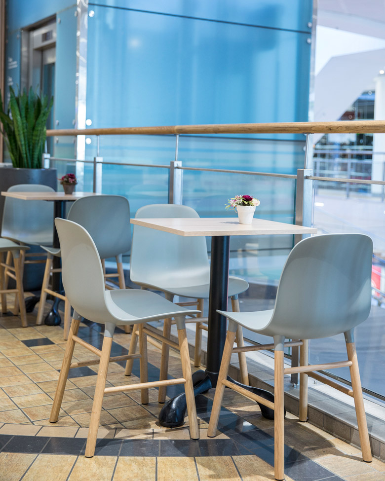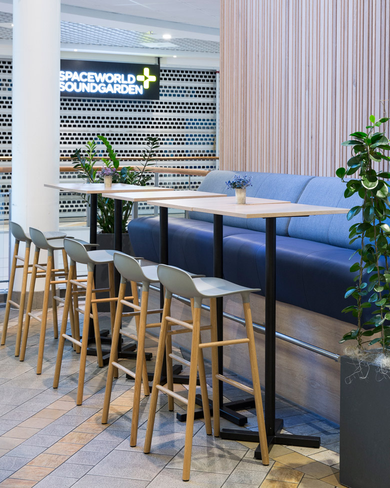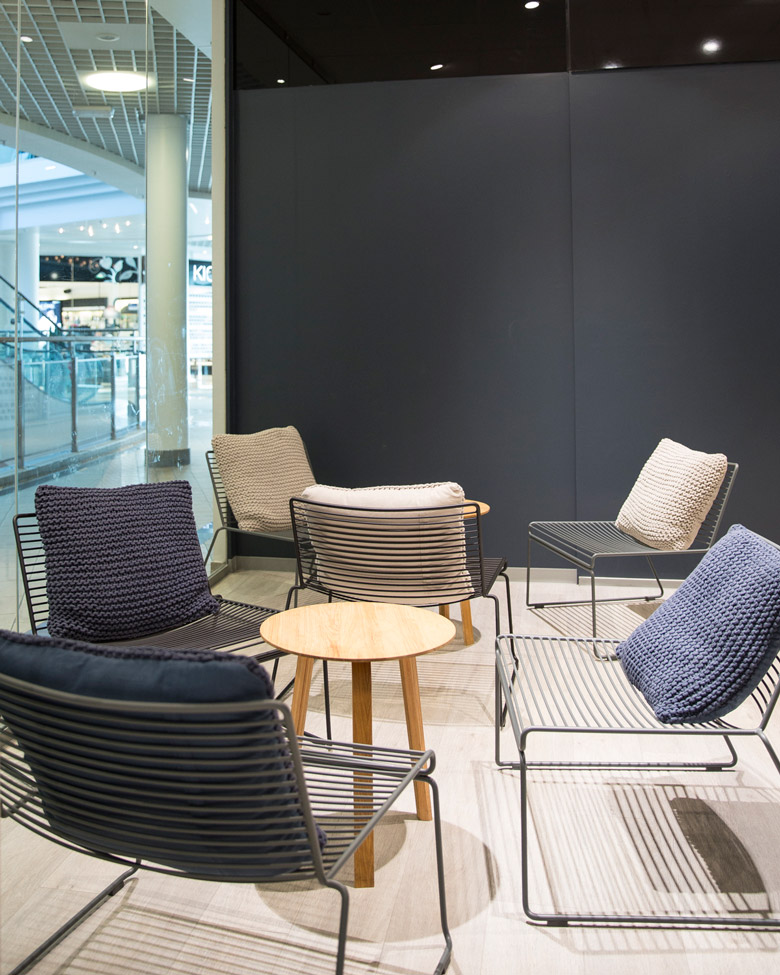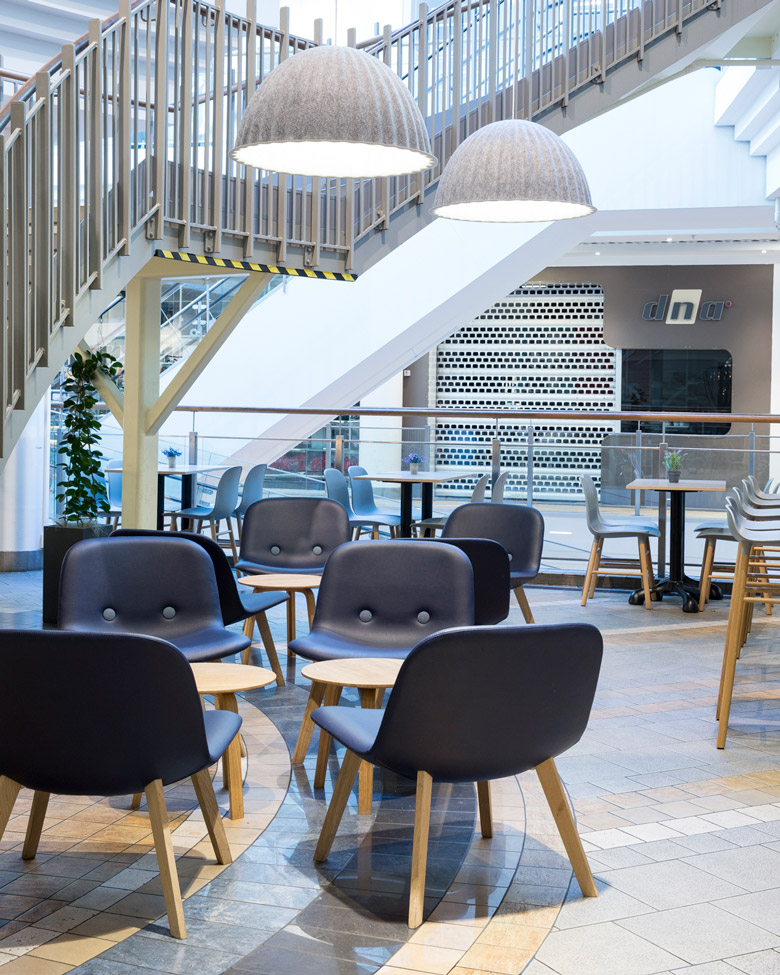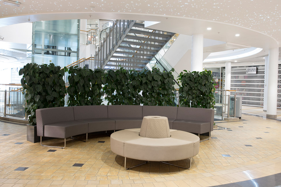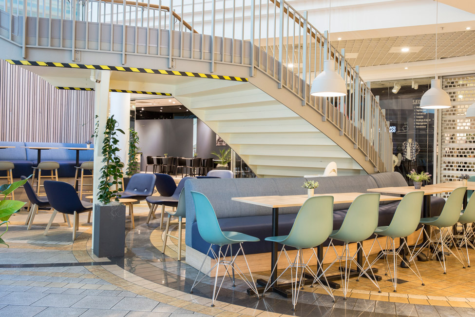 I tillegg til å levere møbler har Senab Eikeland tegnet og møblert fellesområder som små oaser med sofagrupper og planter. Disse er plassert i de ulike etasjene i senteret. Fargene er dempet og står til bygget.