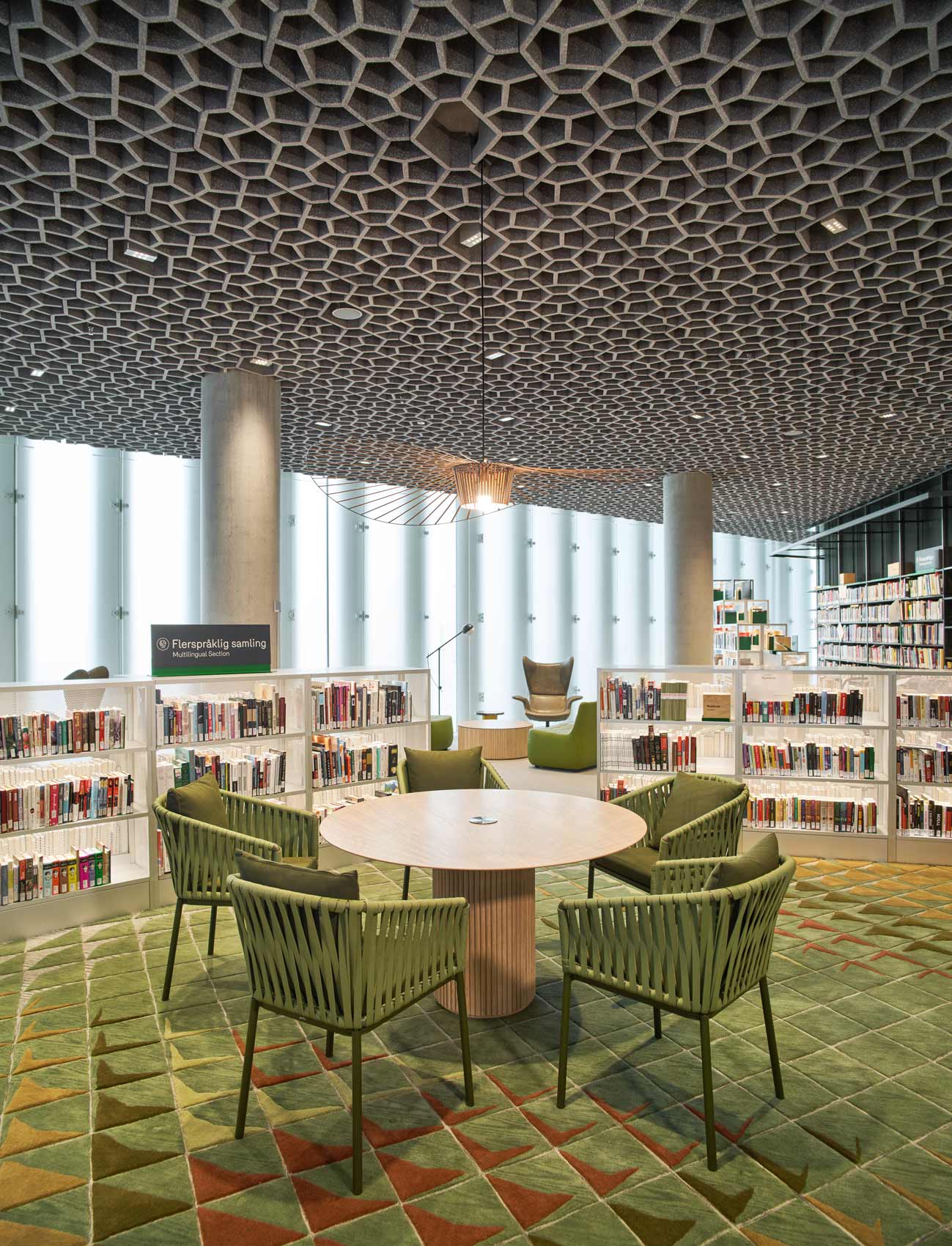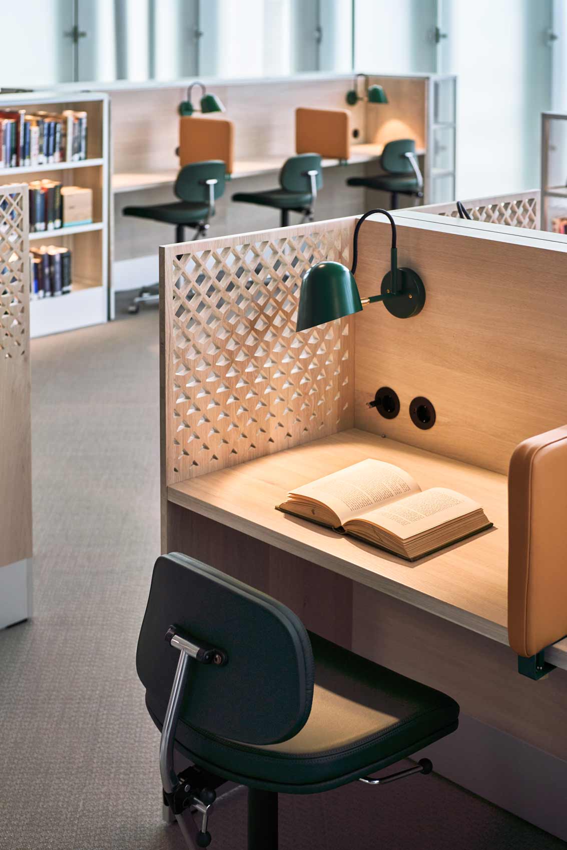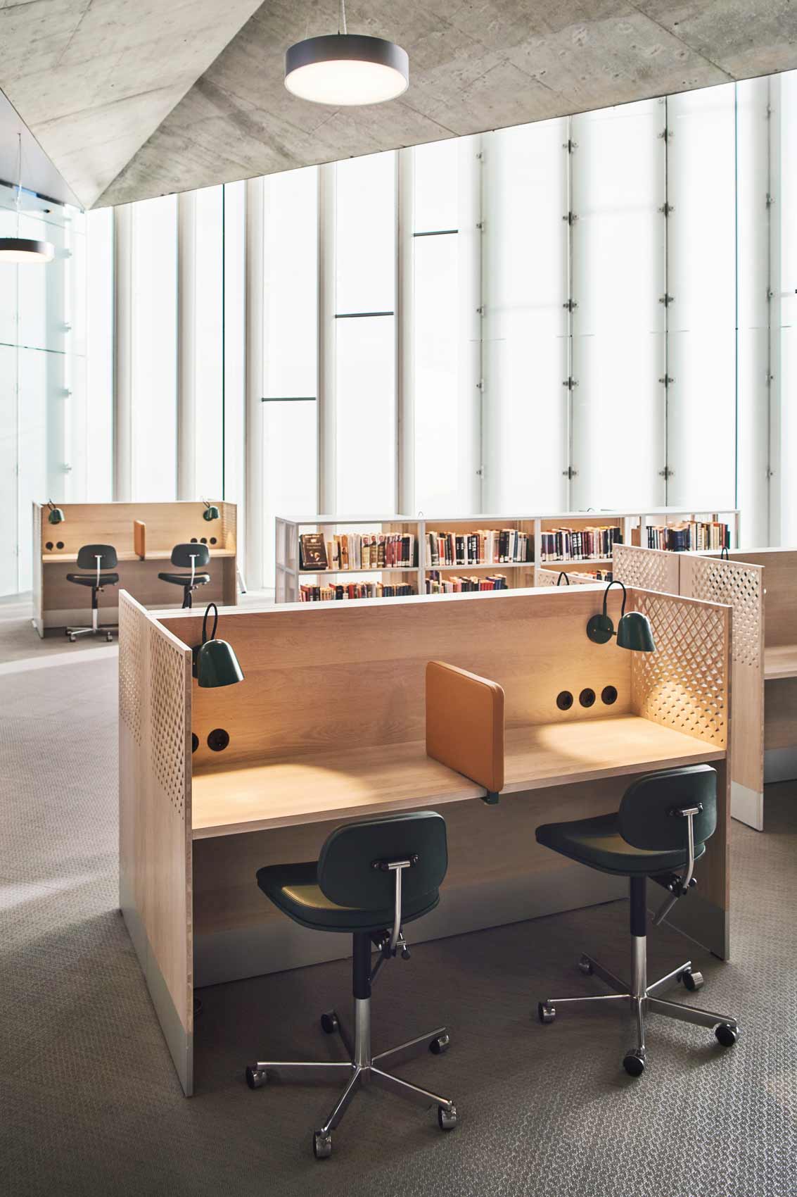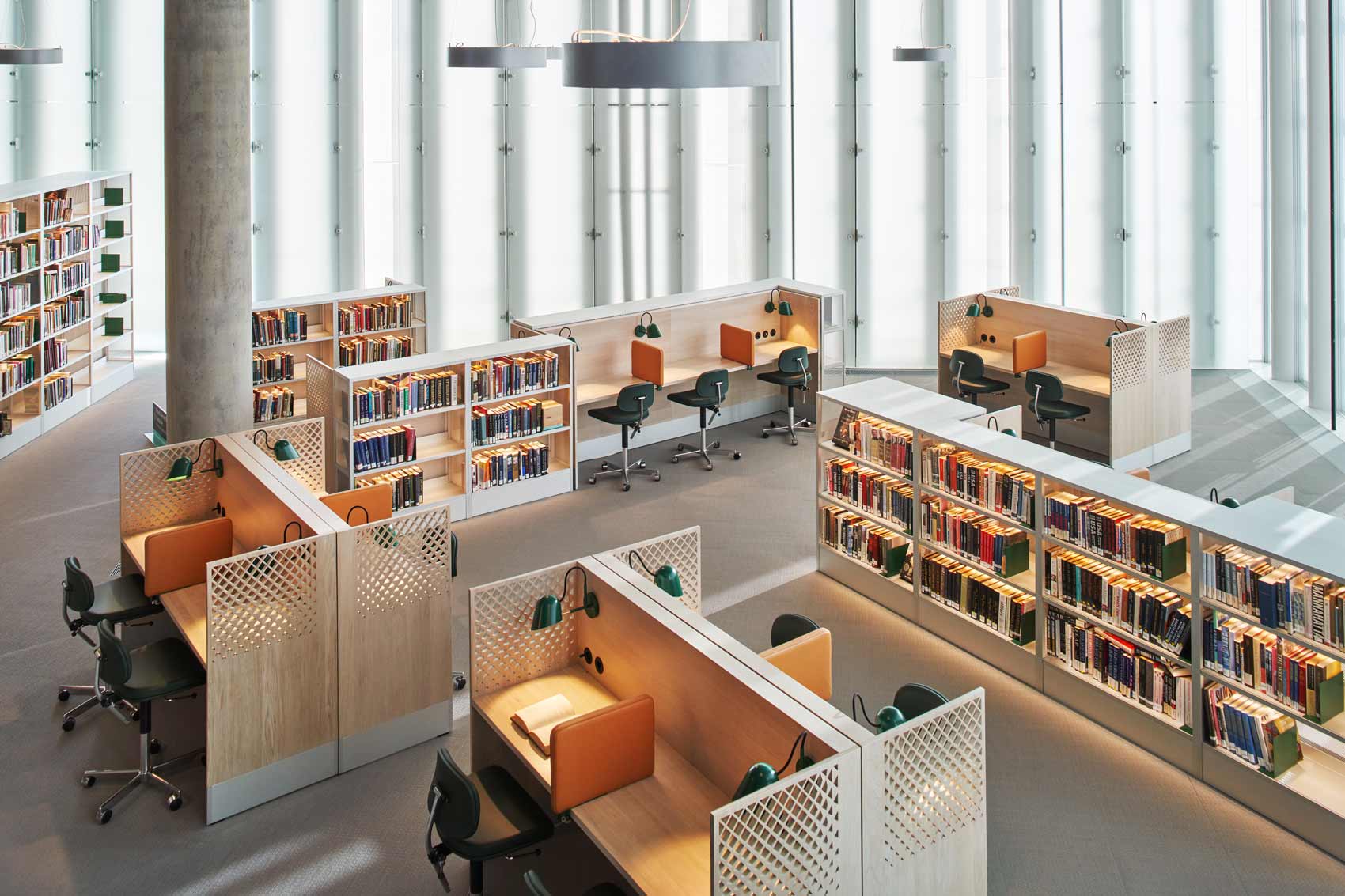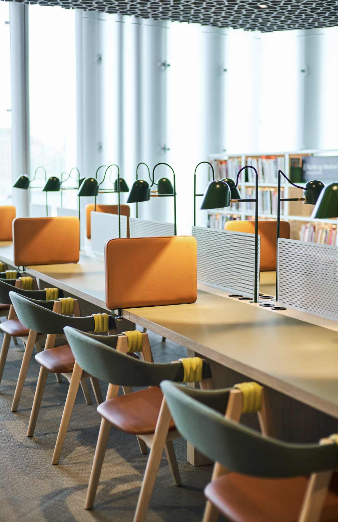 Senab Eikeland er stolt leverandør av møbler til alle bibliotekets områder, som inkluderer lesesaler, kursrom, møterom, stillerom og ulike sitteplasser, samt administrasjonens arbeidsplasser for 100 ansatte.
