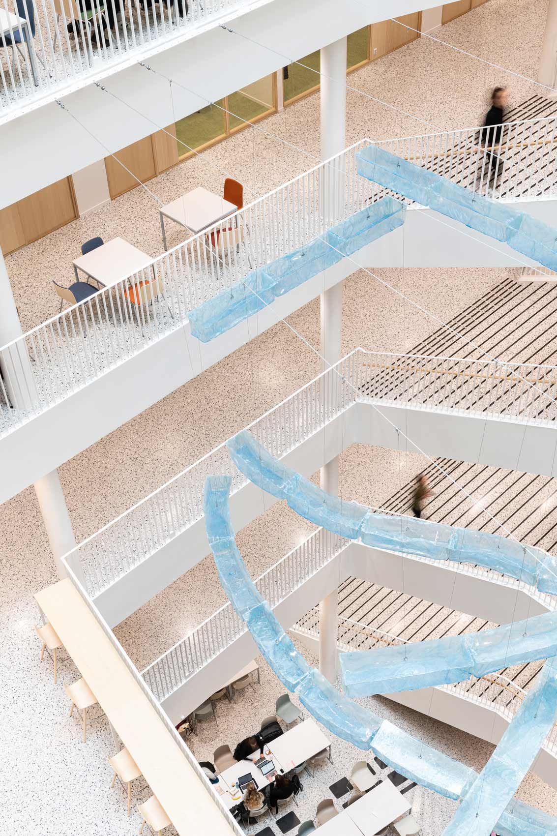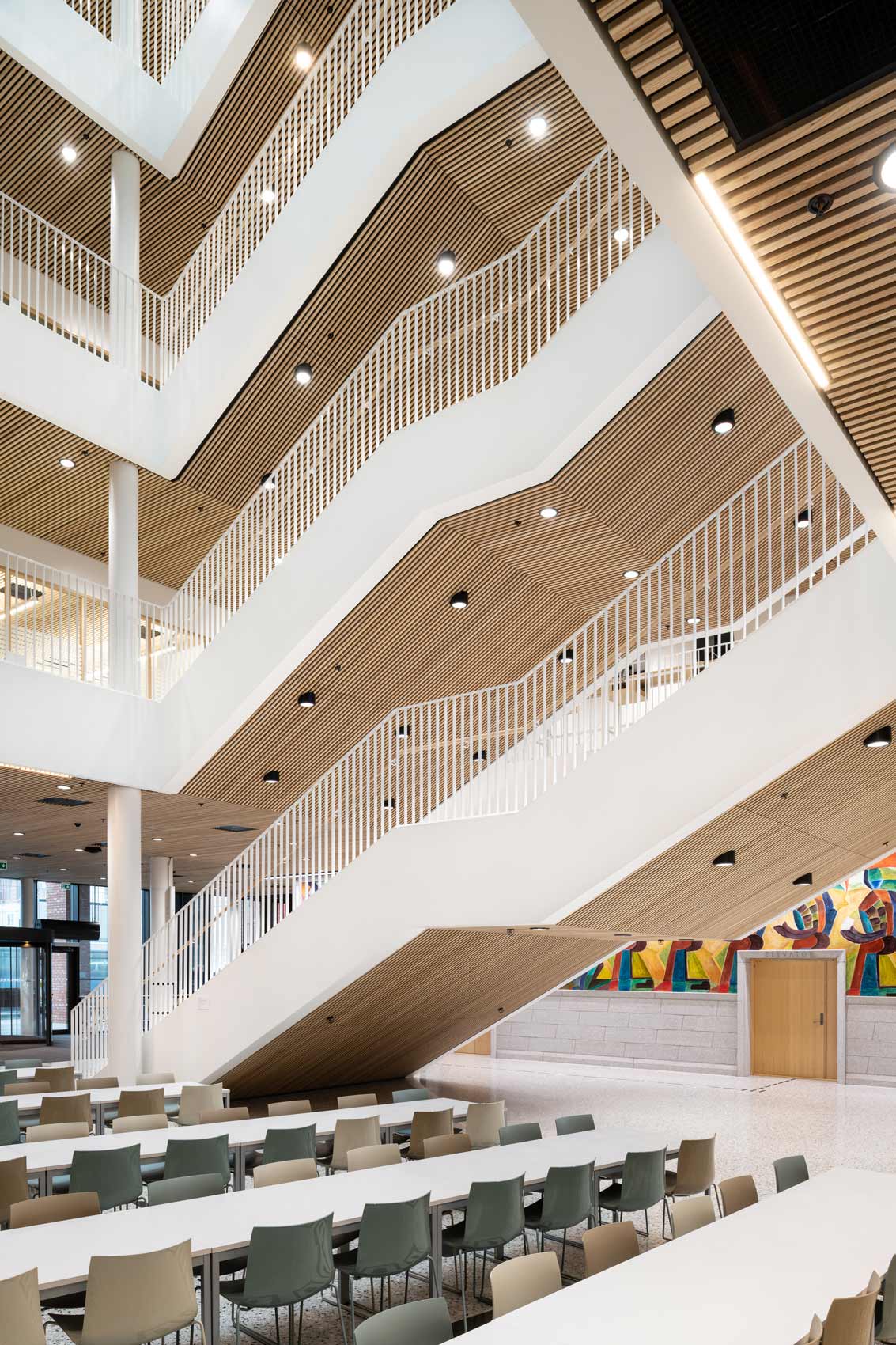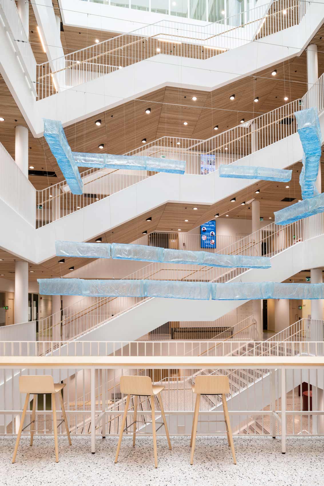 Bygget er særskilt tilrettelagt for Jus-studentenes læring og læringsmiljø, med mer studentaktiv undervisning og lokaler som tilrettelegger for samhandling. Det nye bygget Domus Juridica får en lys og lett interiørpalett med utstrakt bruk av gode historiske farger. Farger og materialer i overflater spiller på tradisjon og vyer for fremtiden, forteller interiørarkitekt Monicka Heck fra IARK.