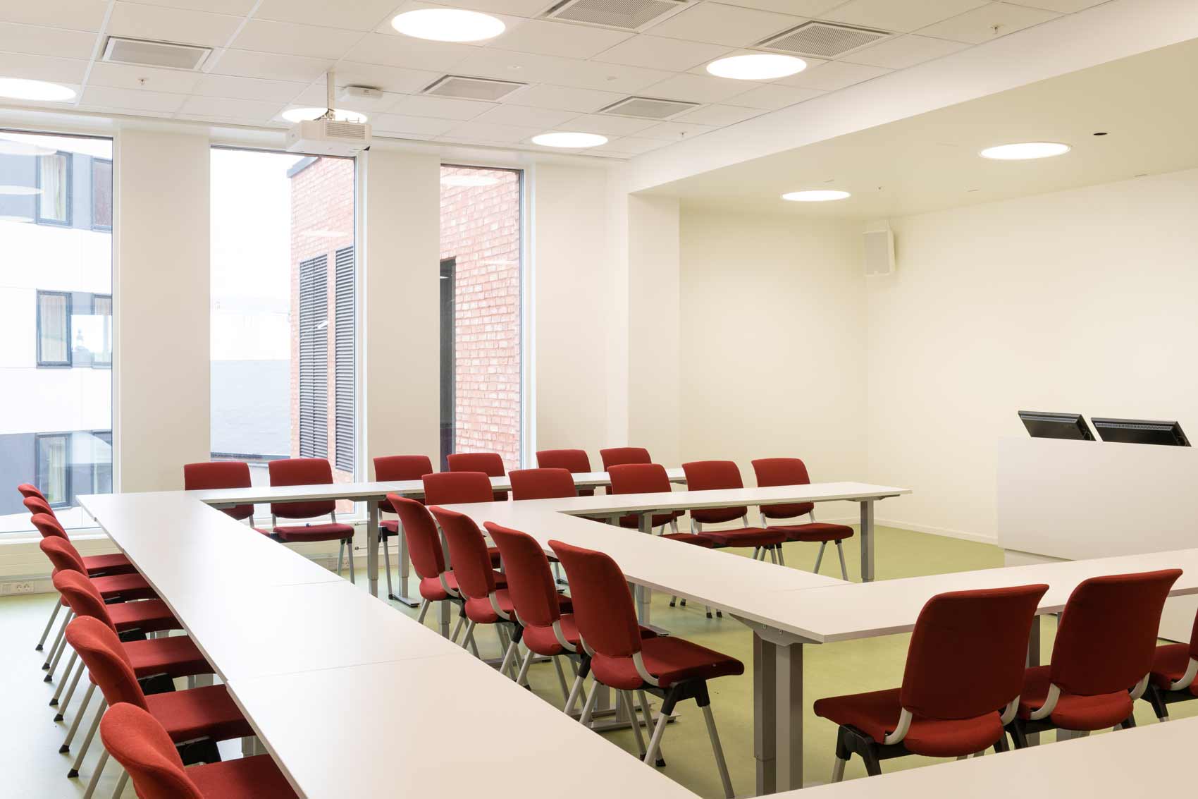 Bygget inneholder undervisningsarealer, lesesaler, kollokvierom, bibliotek og kantine samt diverse støttefunksjoner og arbeidsplasser for fakultets ansatte/administrasjon. Brukere er ca. 3400 studenter og 210 ansatte.