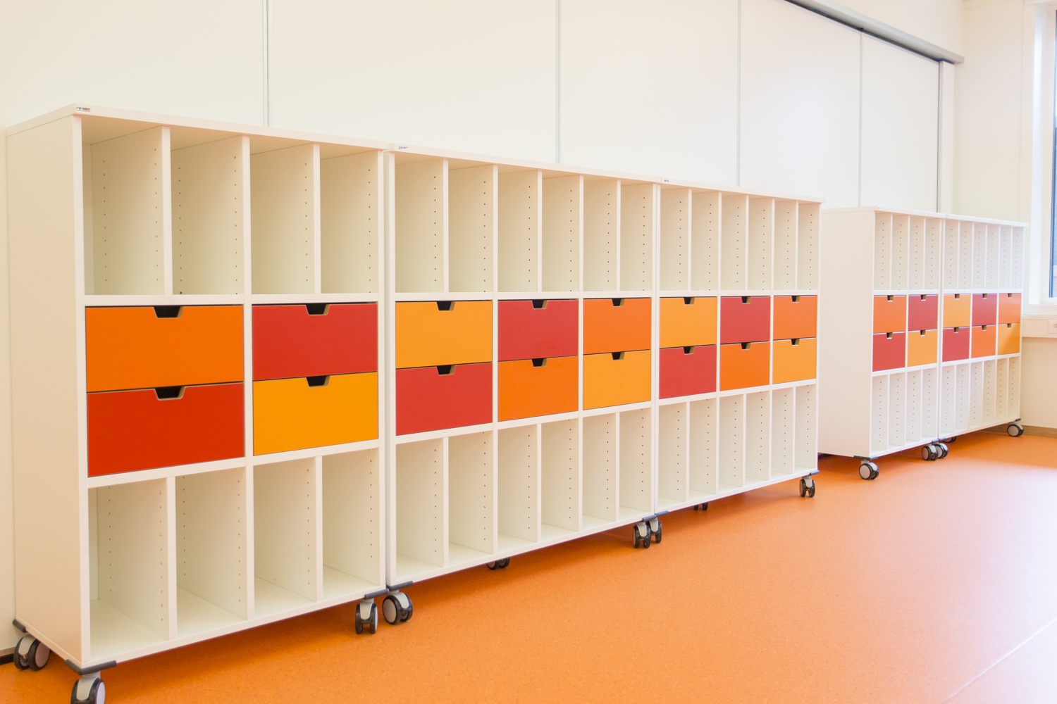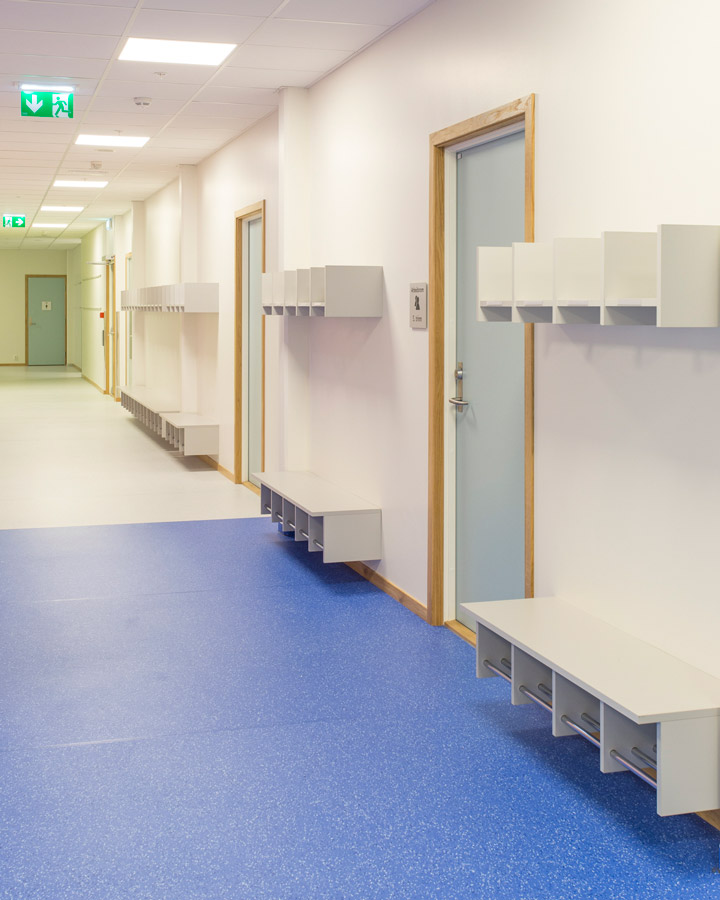 Det betød full gass med en gang. Vi jobbet lange kvelder sammen med prosjektets interiørarkitekt for å tilpasse inventaret til byggets øvrige fargevalg. Det ble svært vellykket – noe de mange og positive tilbakemeldingene vi har fått vitner om.