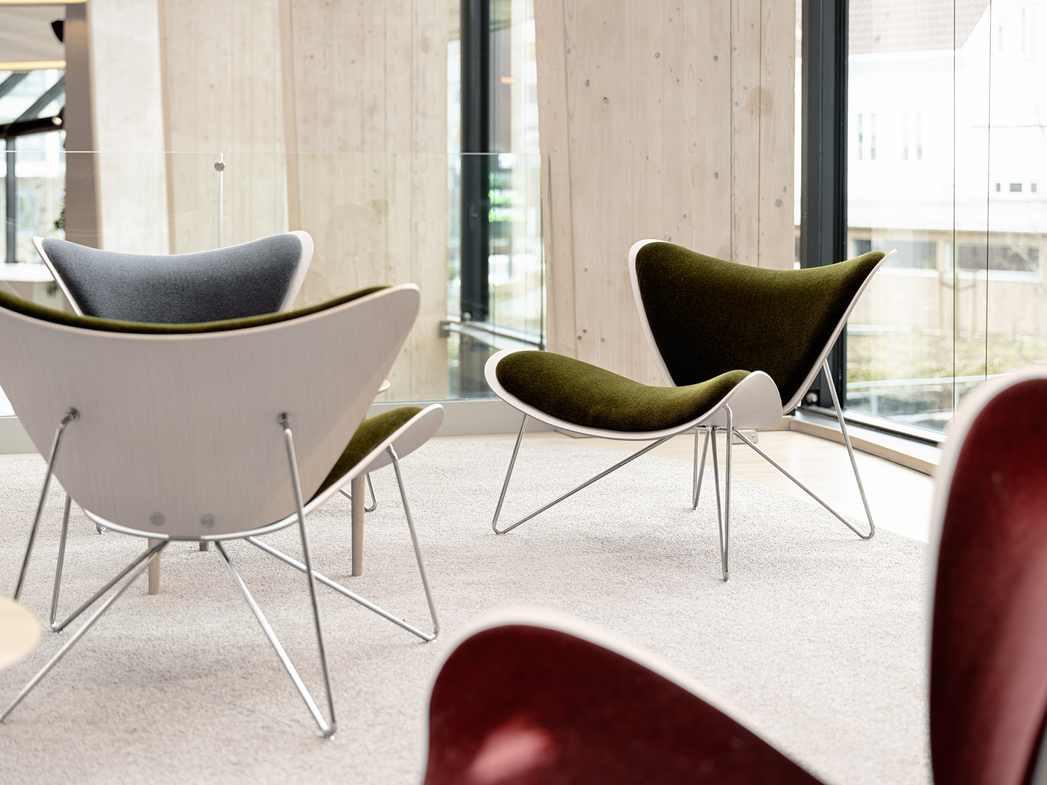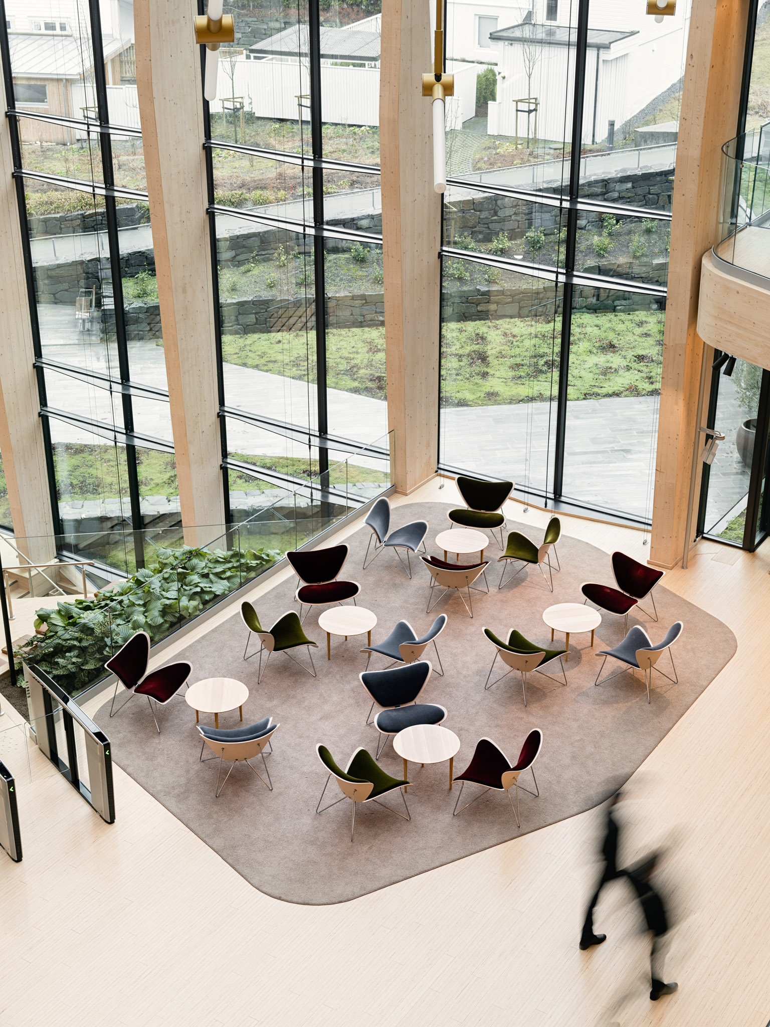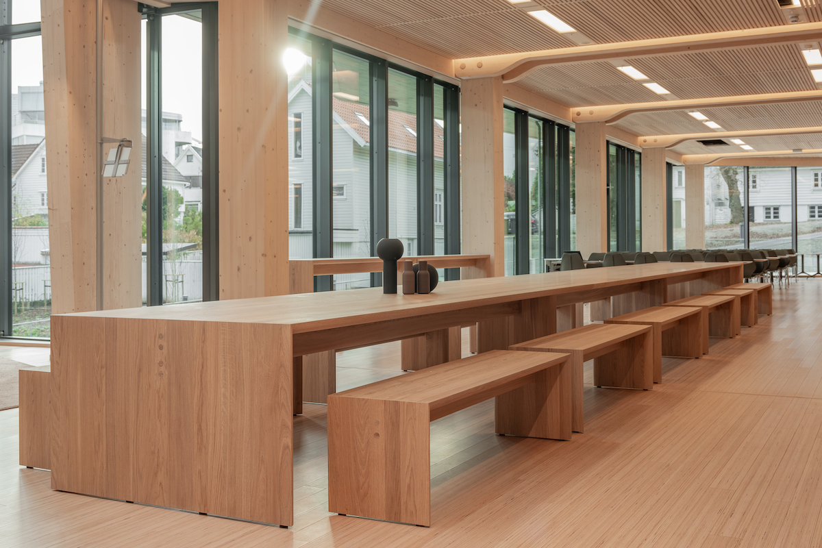 I dette prosjektet etablerte vi en prosjektgruppe med blant annet representanter fra arkitektene hos Helen & Haard og Saaha, SR-Bank, designer Lars Tornøe og et knippe norske produsenter. Målet var miljøvennlige og bærekraftige løsninger, kortreist design, og lokalproduserte møbler. Prosjektet skulle være så nær 100% norsk som mulig.