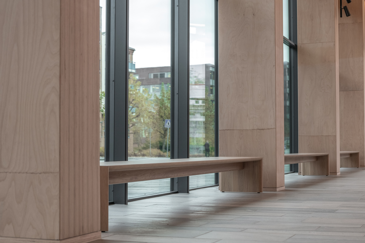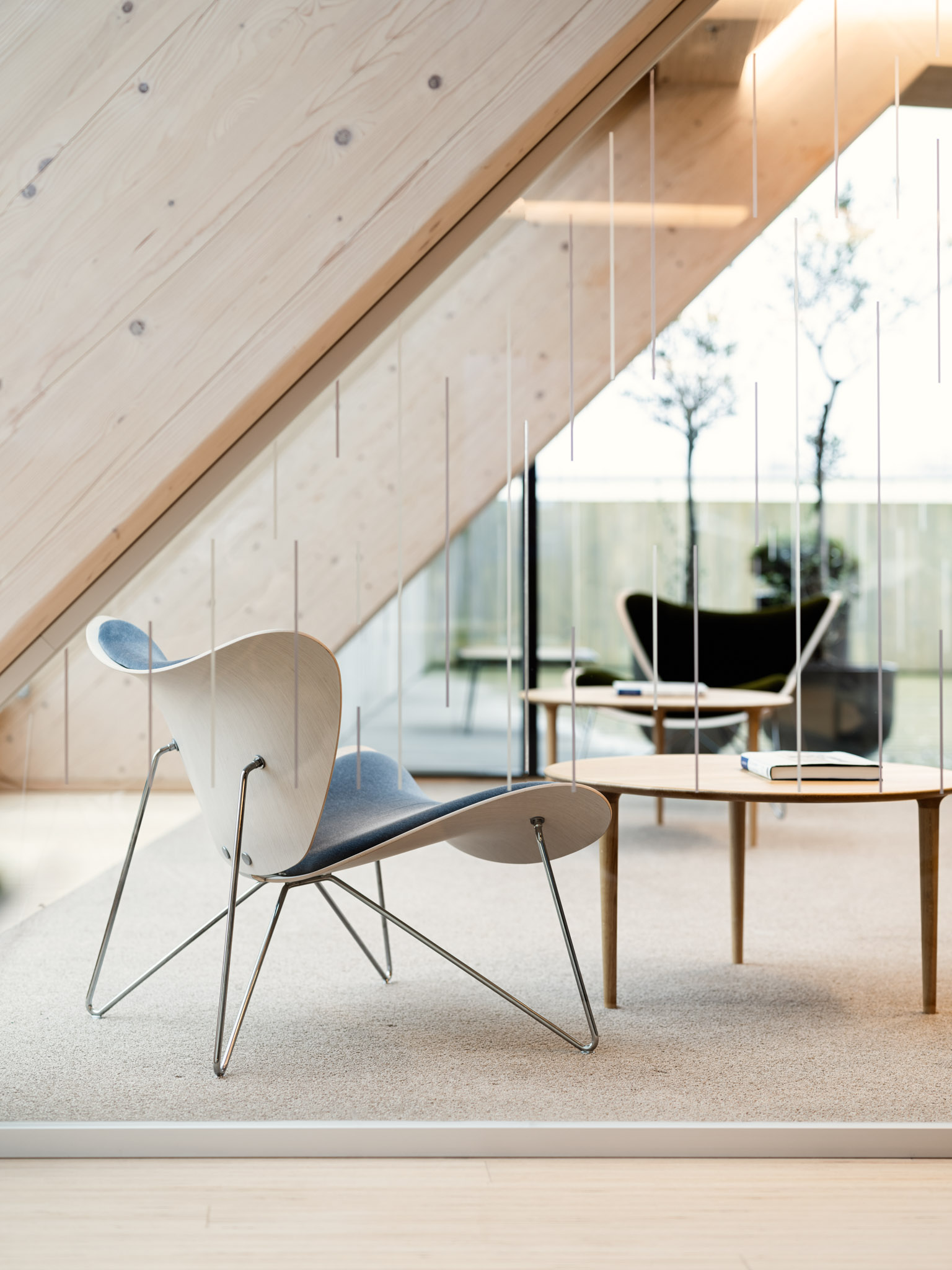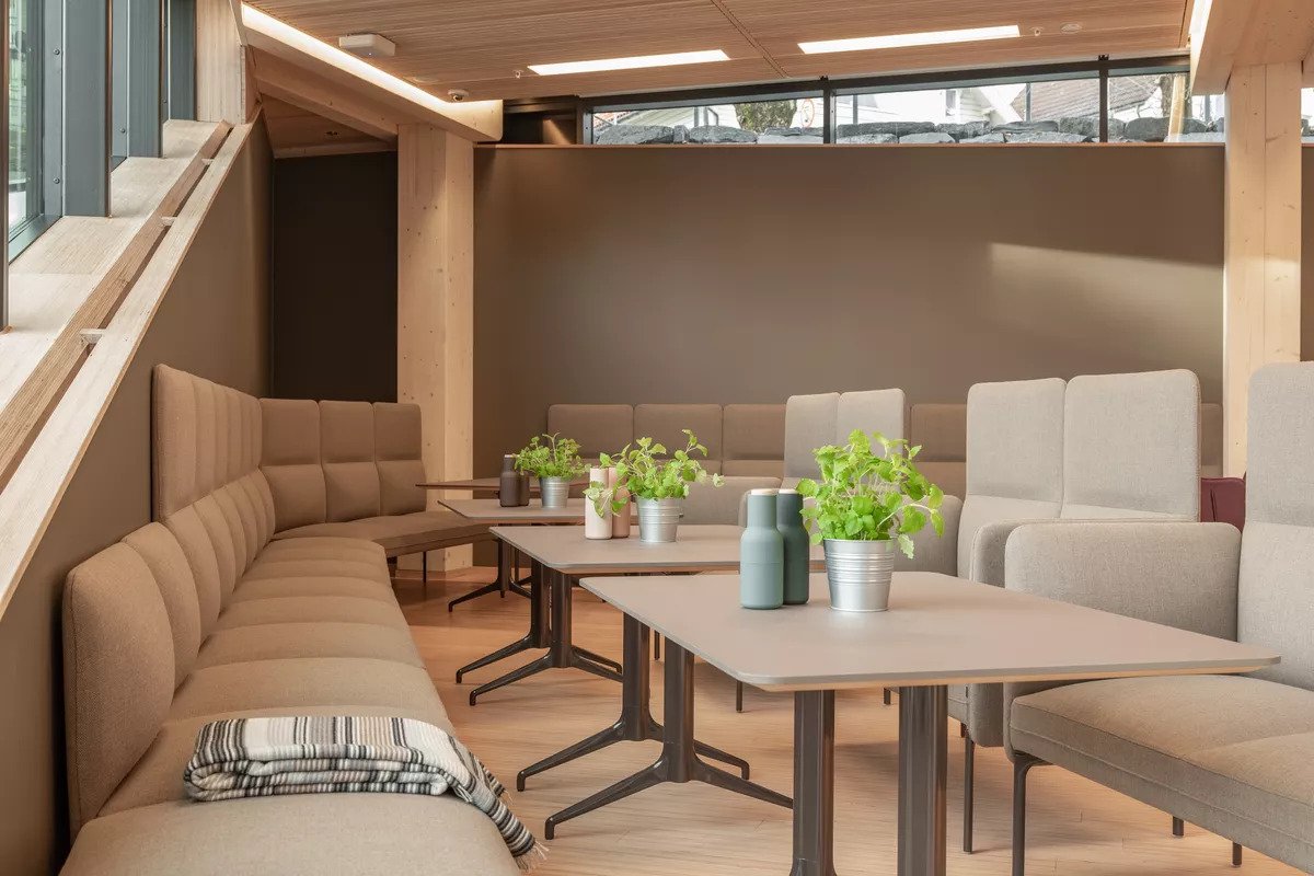 I dette prosjektet etablerte vi en prosjektgruppe med blant annet representanter fra arkitektene hos Helen & Haard og Saaha, SR-Bank, designer Lars Tornøe og et knippe norske produsenter. Målet var miljøvennlige og bærekraftige løsninger, kortreist design, og lokalproduserte møbler. Prosjektet skulle være så nær 100% norsk som mulig.