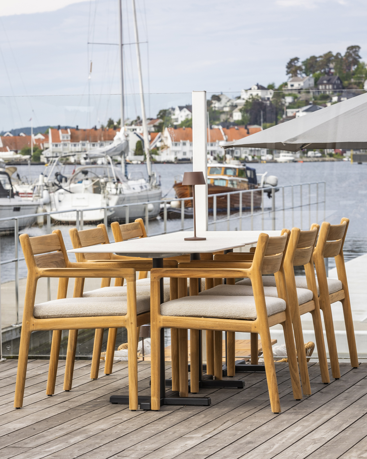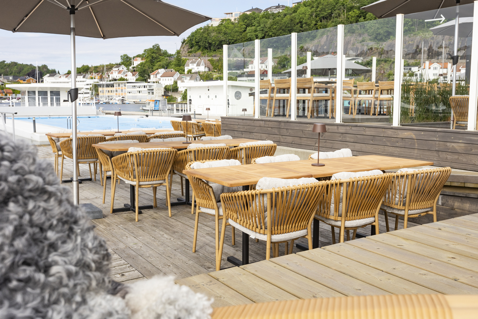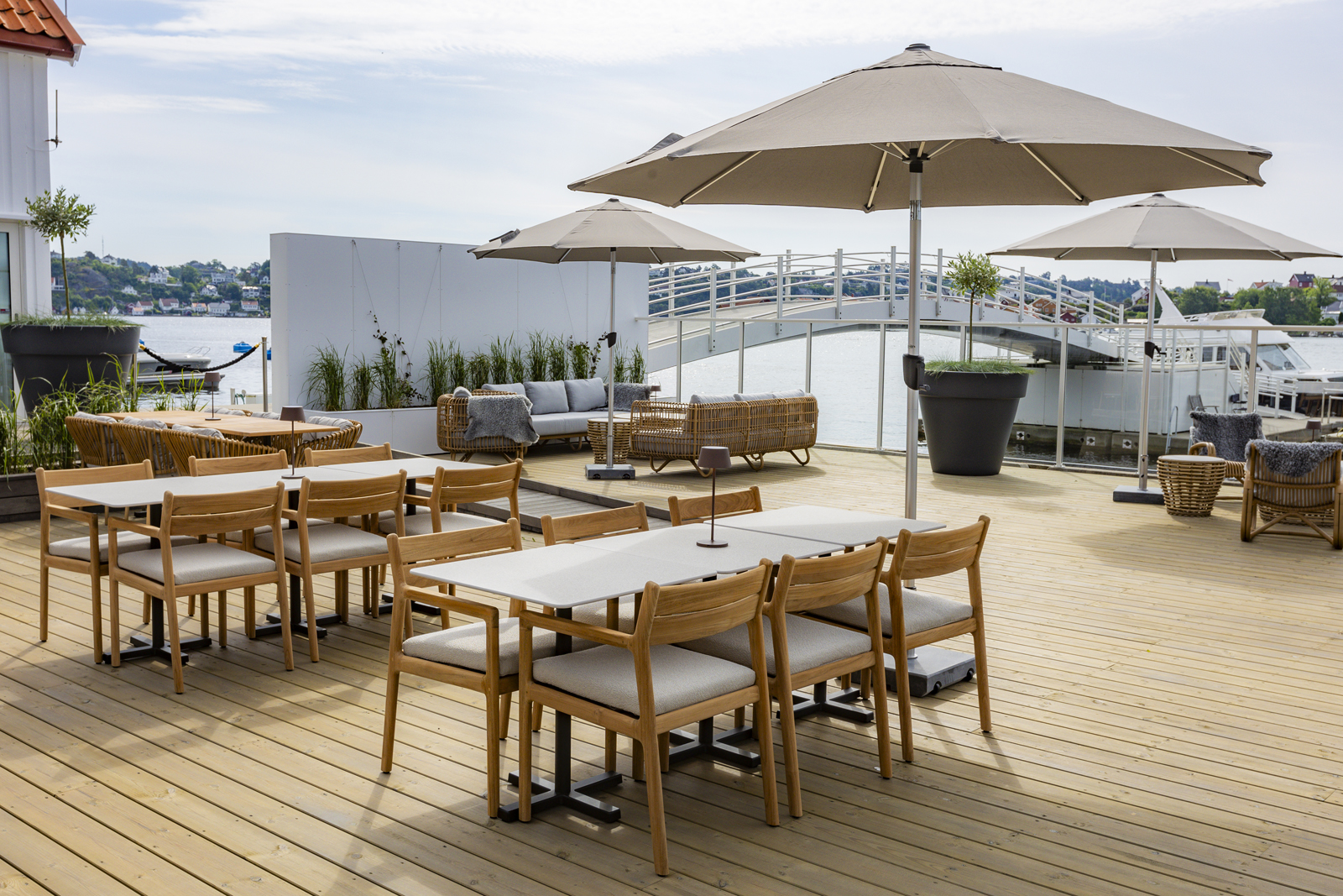 Vi har nylig hatt gleden av å samarbeide med Hill Marina for å skape en eksklusiv uterestaurant, potensielt Norges fineste gjestehavn. Målet var å levere møbler av høy kvalitet som både tåler tidens tann og gjenspeiler den høye standarden på maten som serveres. Vi valgte møbler som kombinerer estetisk eleganse med slitestyrke, noe som sikrer at uterestauranten fremstår innbydende og sofistikert over tid. Våre nøye utvalgte spise- og loungemøbler skaper en variert og komfortabel opplevelse for gjestene, enten de ønsker et formelt måltid eller en avslappet stund i solen.