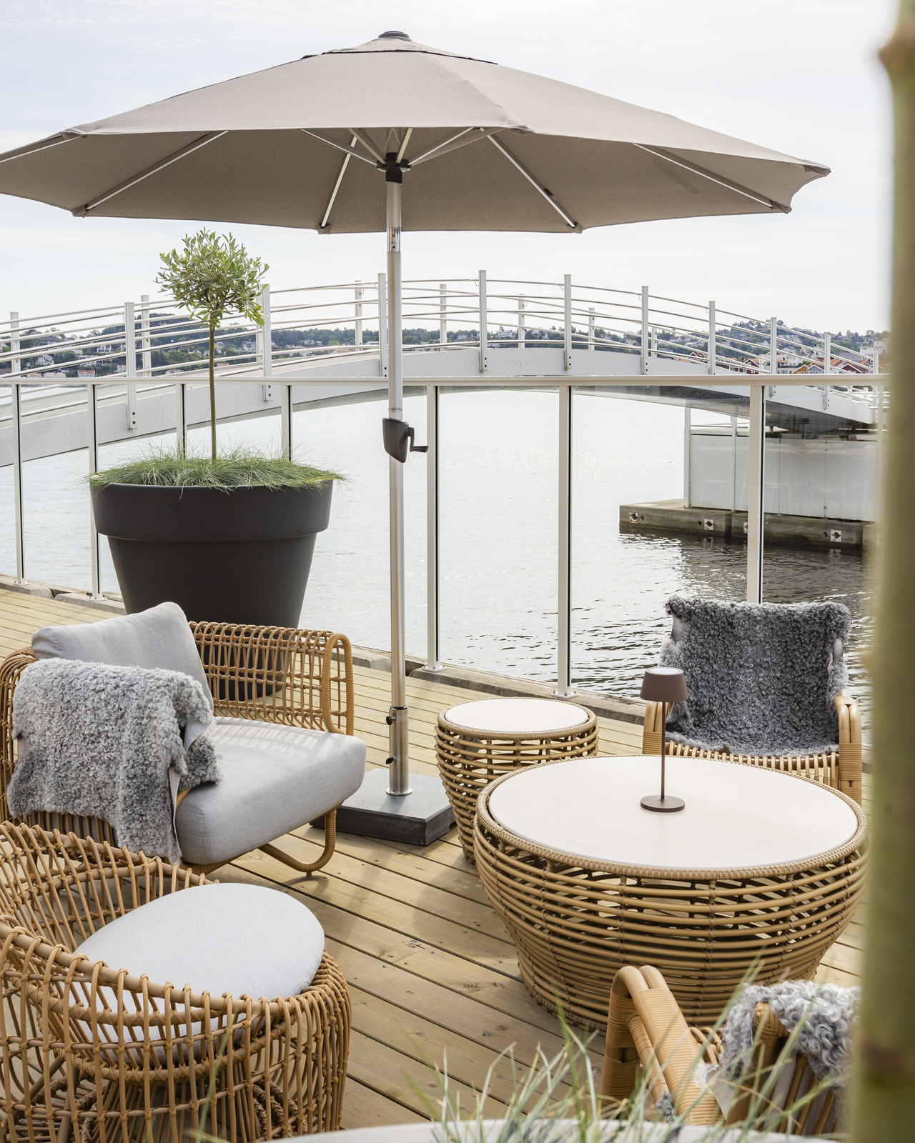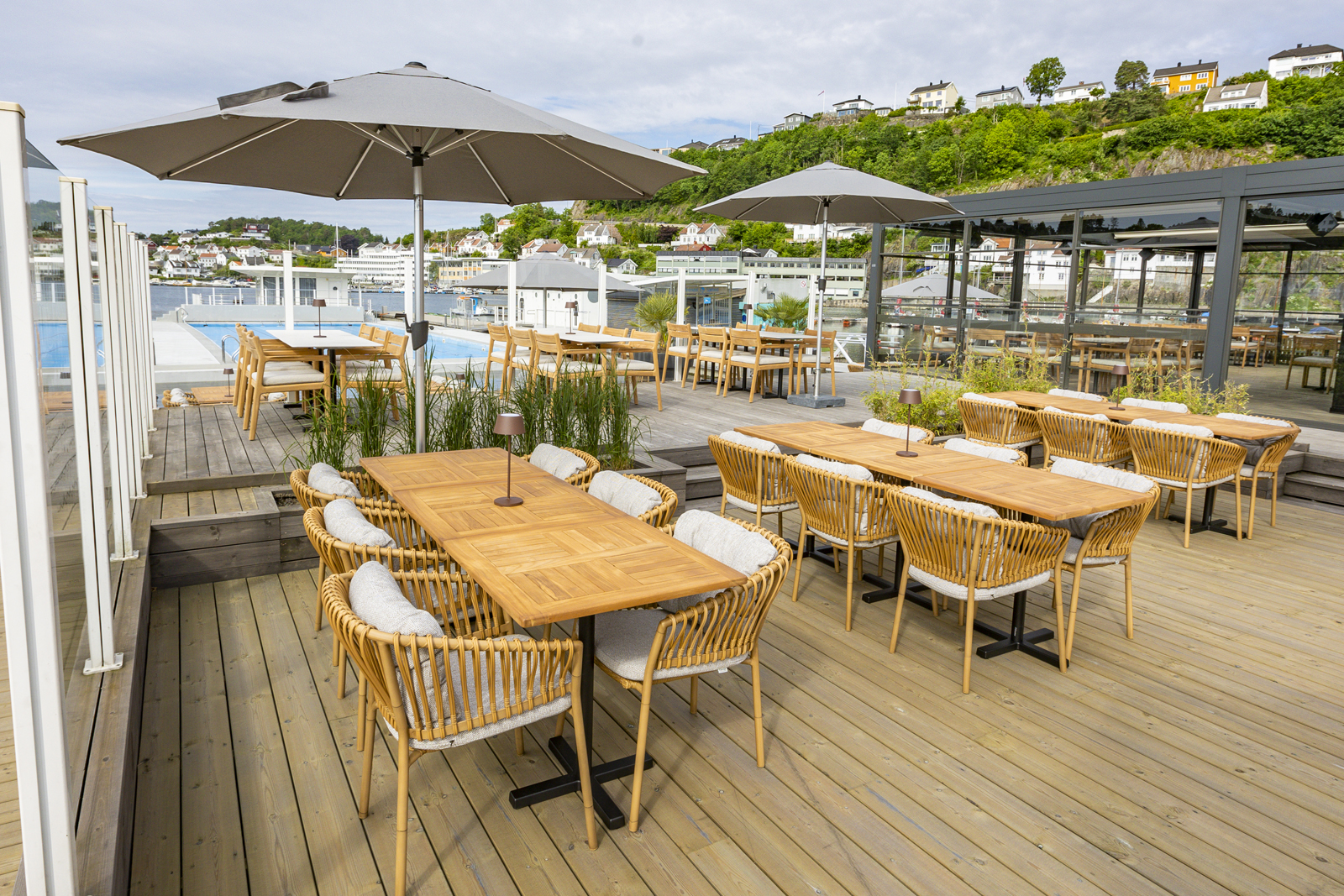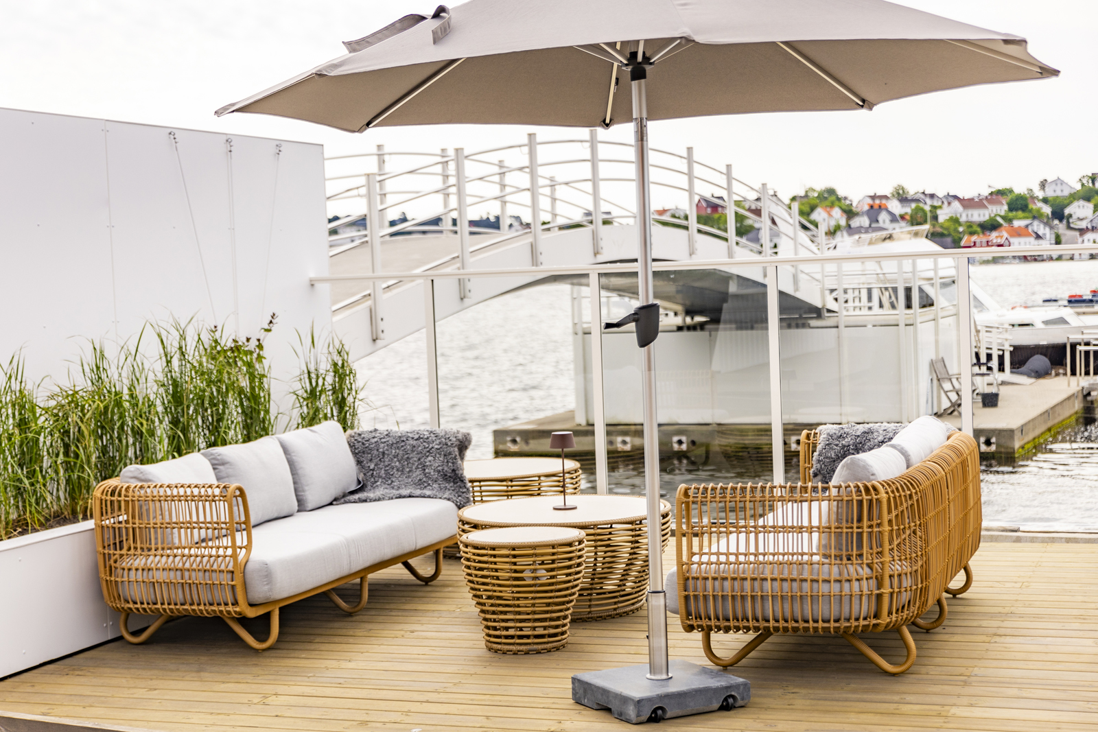 Vi har nylig hatt gleden av å samarbeide med Hill Marina for å skape en eksklusiv uterestaurant, potensielt Norges fineste gjestehavn. Målet var å levere møbler av høy kvalitet som både tåler tidens tann og gjenspeiler den høye standarden på maten som serveres. Vi valgte møbler som kombinerer estetisk eleganse med slitestyrke, noe som sikrer at uterestauranten fremstår innbydende og sofistikert over tid. Våre nøye utvalgte spise- og loungemøbler skaper en variert og komfortabel opplevelse for gjestene, enten de ønsker et formelt måltid eller en avslappet stund i solen.