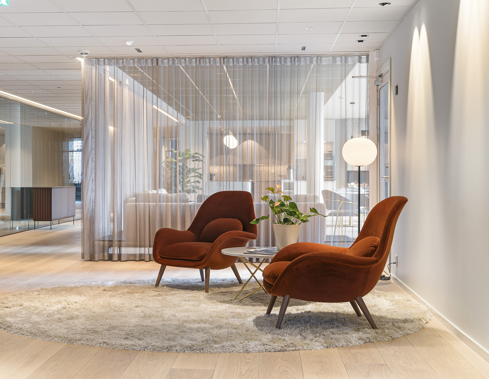 Blant løsningene de er mest fornøyde med er kantineområdet som utmerker seg spesielt. «Her skapte bruk av gardiner en atmosfære av varme og kos, som bidro til å gjøre rommet innbydende og behagelig for både ansatte og besøkende. Denne løsningen lyktes med å forene funksjonalitet med estetikk på en måte som vi er svært tilfredse med».