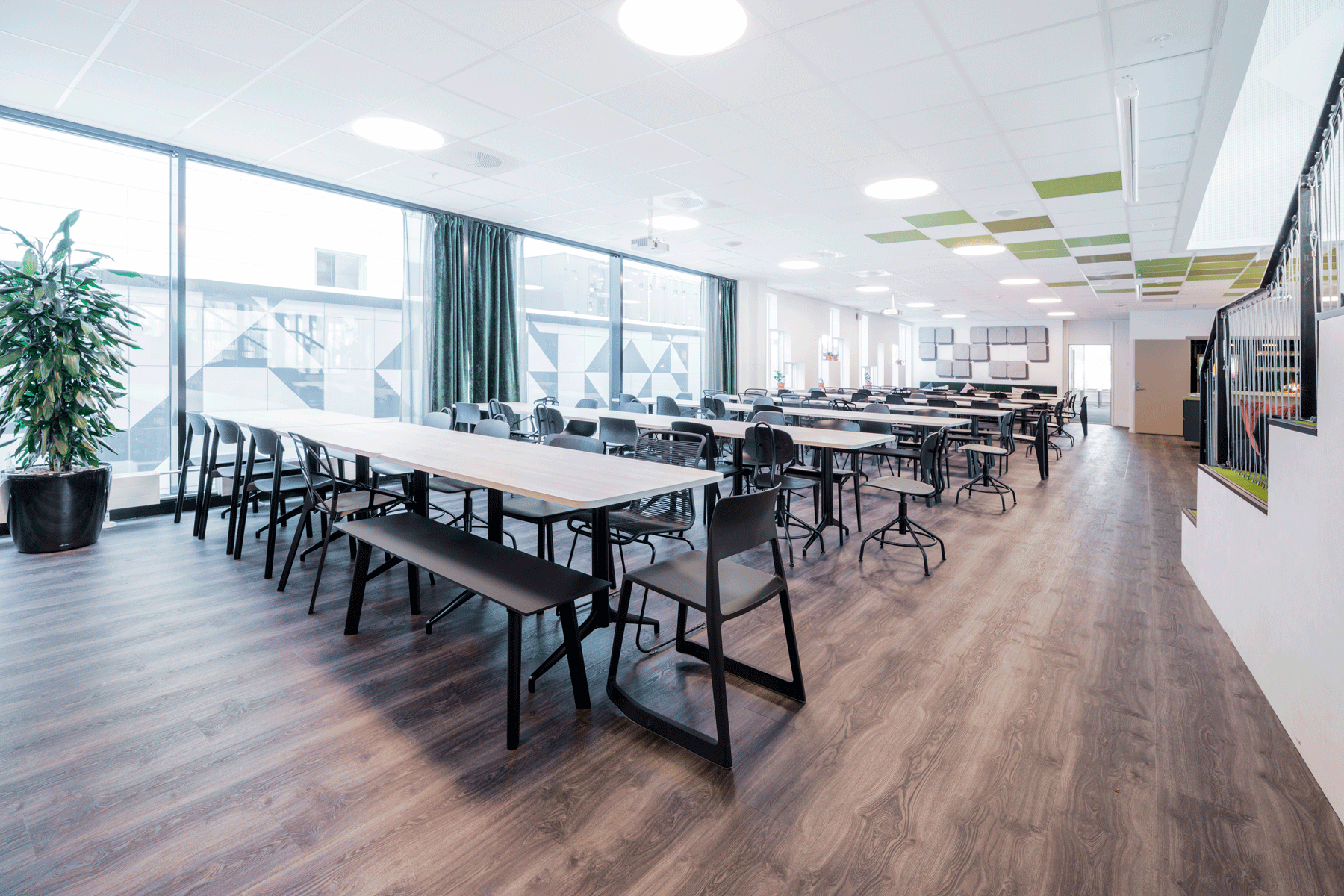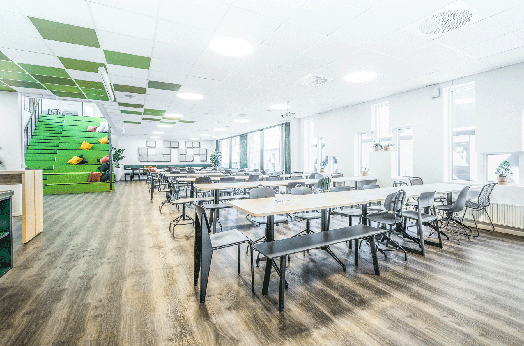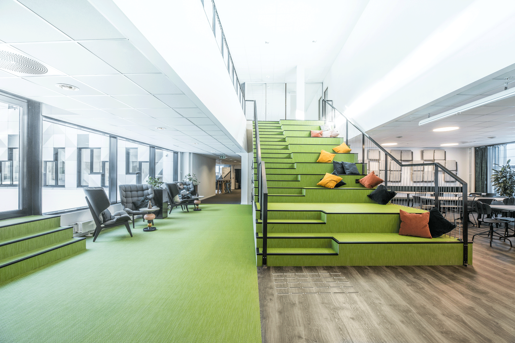 Norconsult overtok Solem Arkitektur i 2014, og etter flere års tett og godt samarbeid har de nå flyttet sammen, og har pusset opp til trivelige, moderne og inspirerende kontorlokaler i aktivitetsbaserte kontorløsninger. I lokalene finner du i dag blant annet modellverksted for arkitektene, tilpassede prosjektrom og store fellesarealer som innbyr til interaksjon mellom de ulike fagene. I forbindelse med oppussingen av lokalene ble det også plass til en klatrevegg, som gir en fin avveksling etter en arbeidsdag på kontoret.
