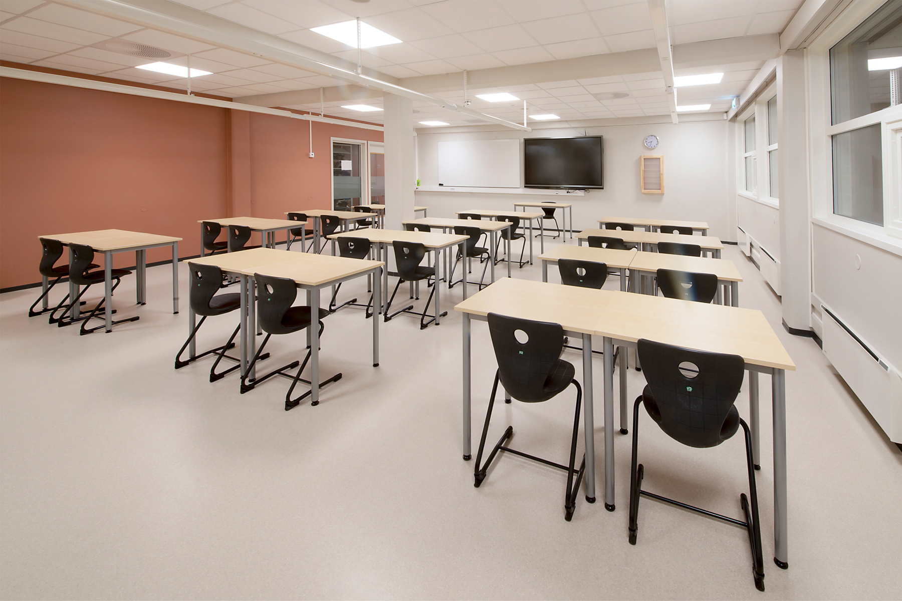 Senab Eikeland Øst avd. Hedmark / Oppland leverte sommeren 2017 komplett innredning til Norges Toppidrettsgymnas på Lillehammer. Vi innredet administrasjon med kontorer, møterom, sosiale soner, elevarealer og spesialrom i samarbeid med Anette Høstmælingen i RAM Arkitektur.