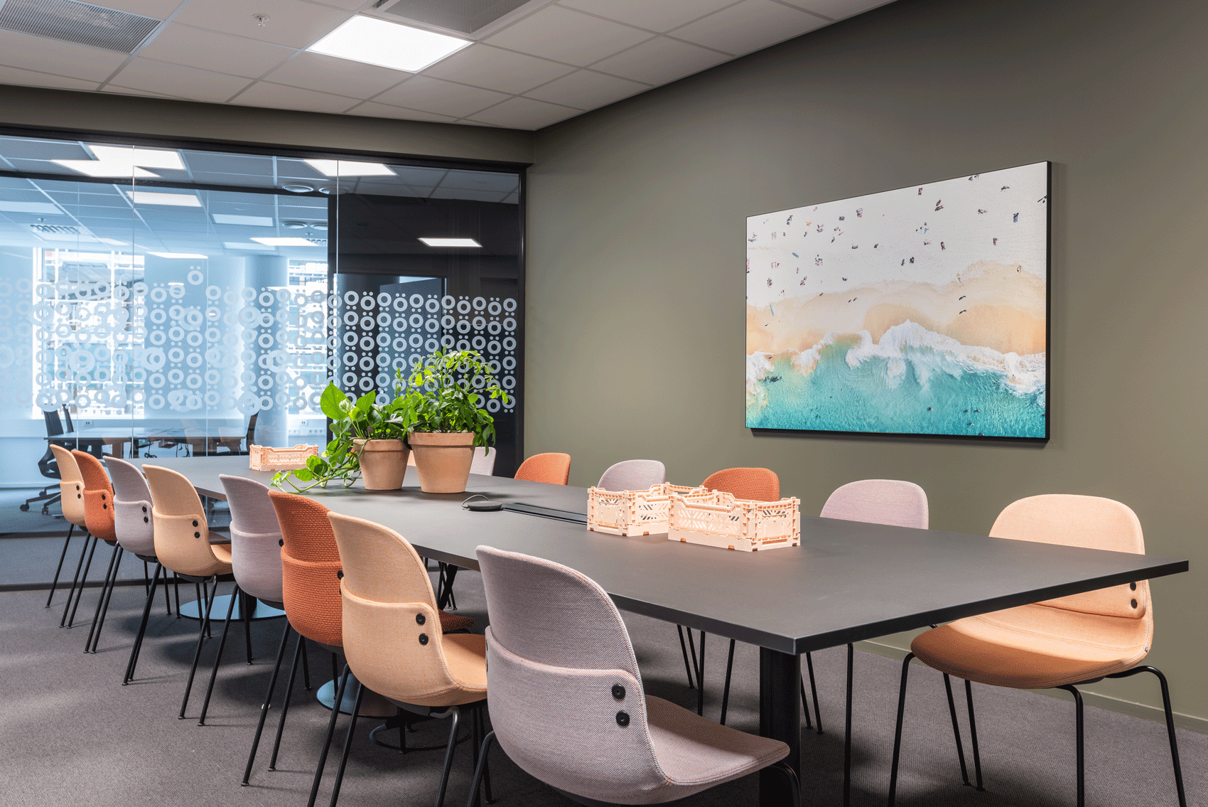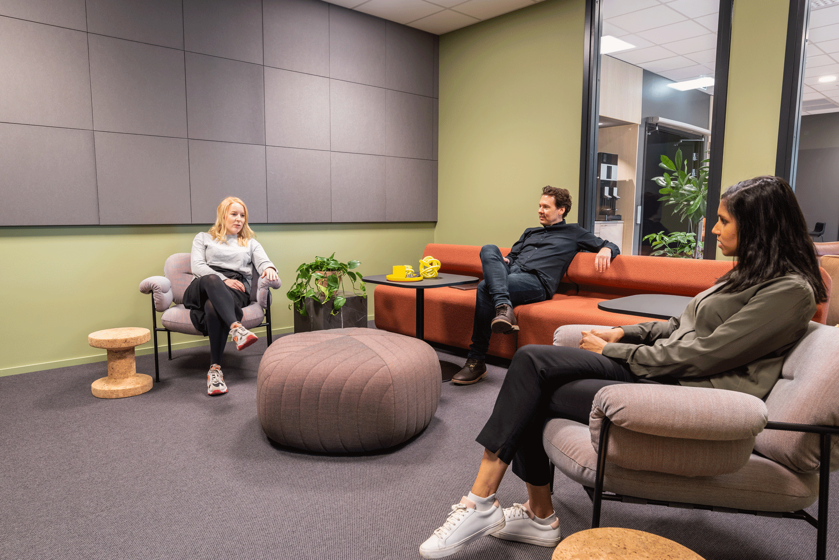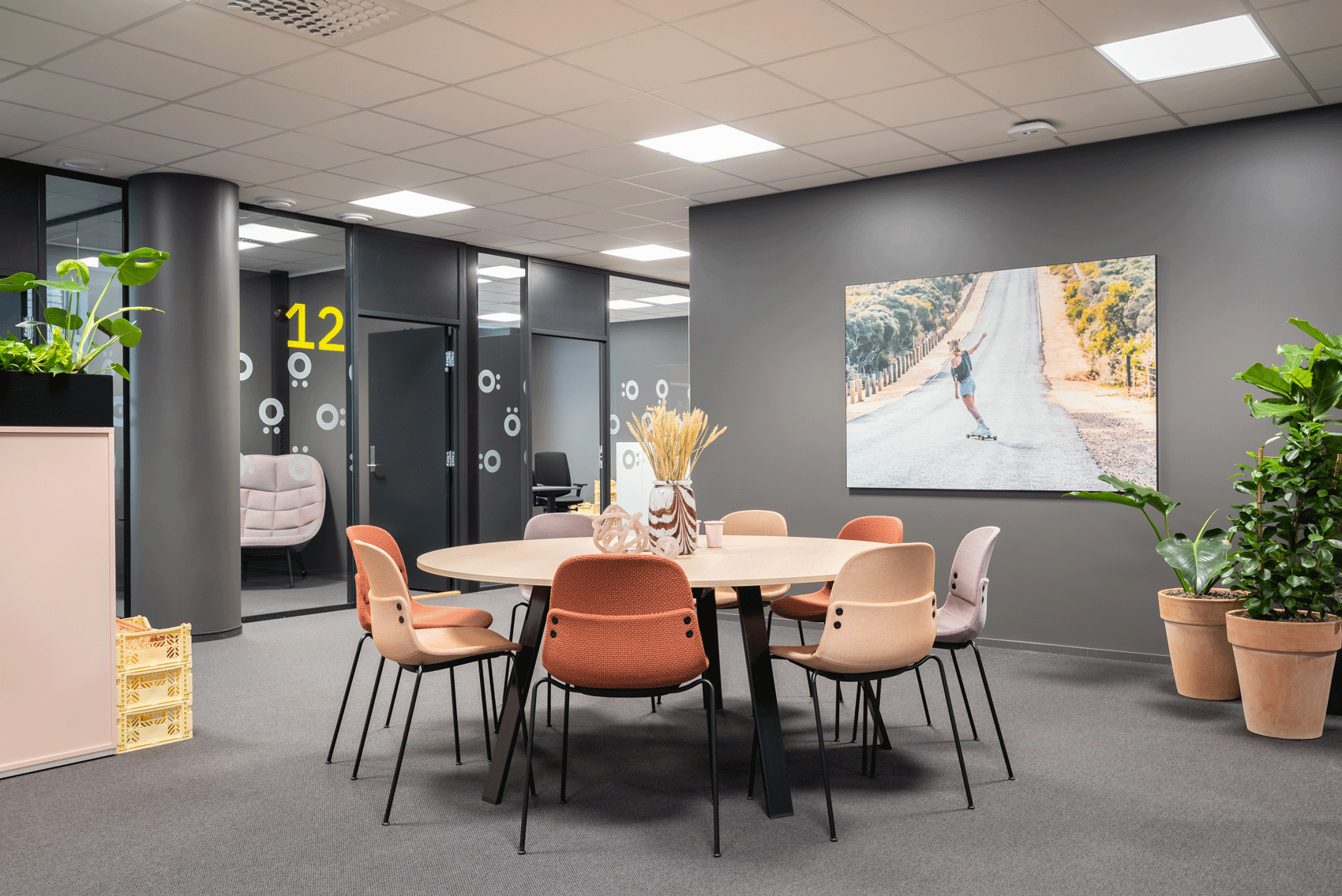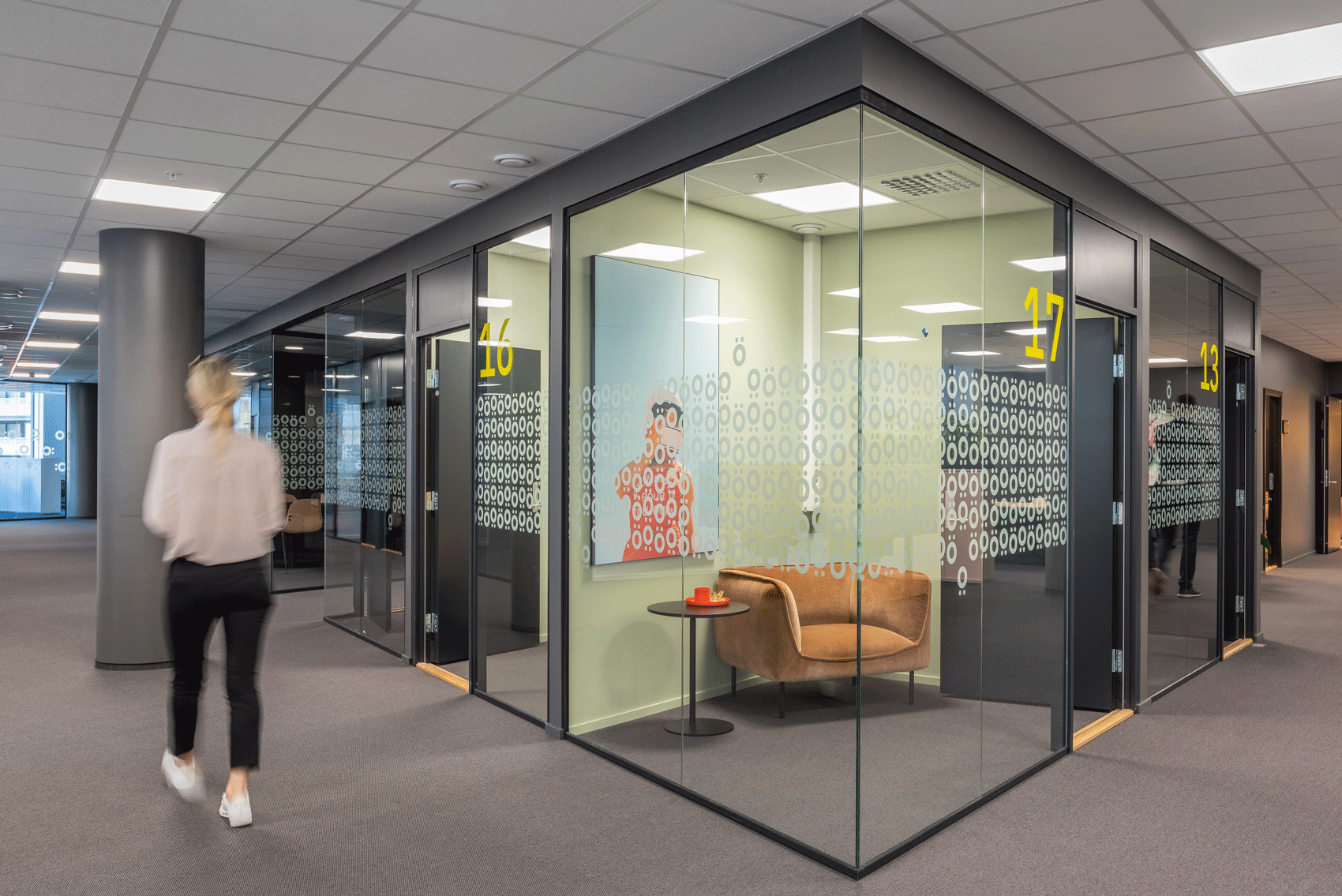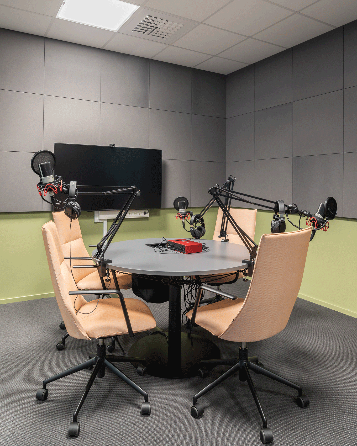 En egen husvert ønsker deg velkommen til flotte nye lokaler med et variert møteromstilbud, koselige fellessoner og møblerte kontorer. Invitér kunder til en presentasjon i et av de imponerende lyd-og bilderommene og produser din egen podcast i Ö-s eget podcastrom.