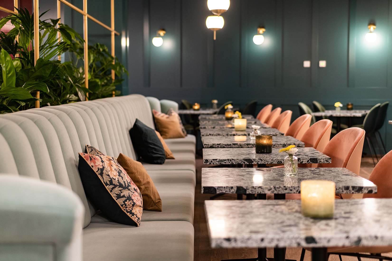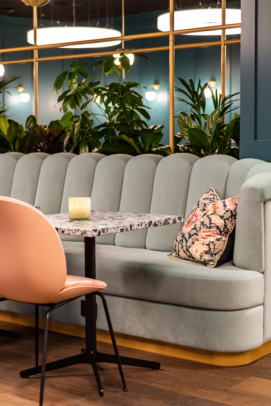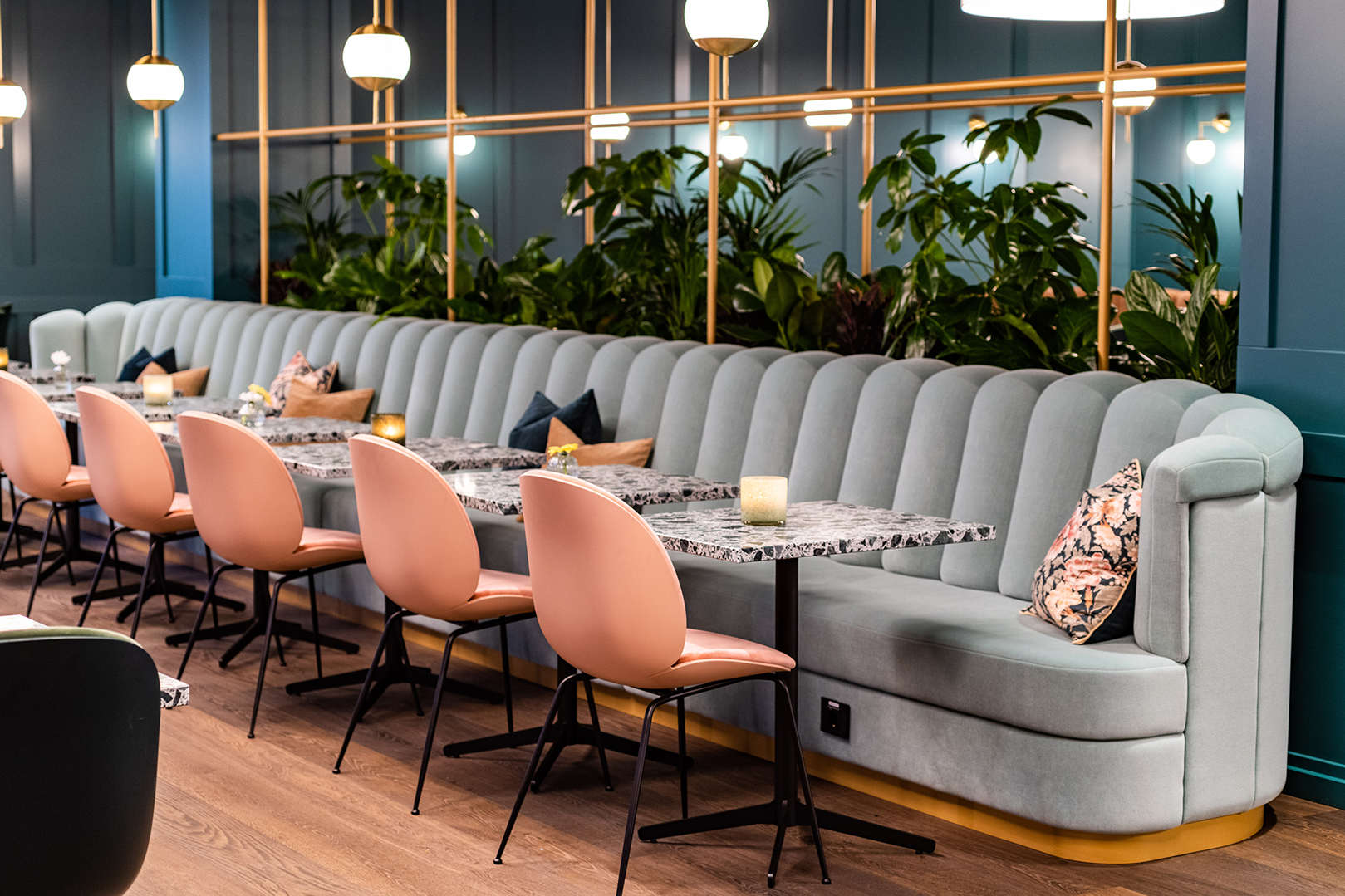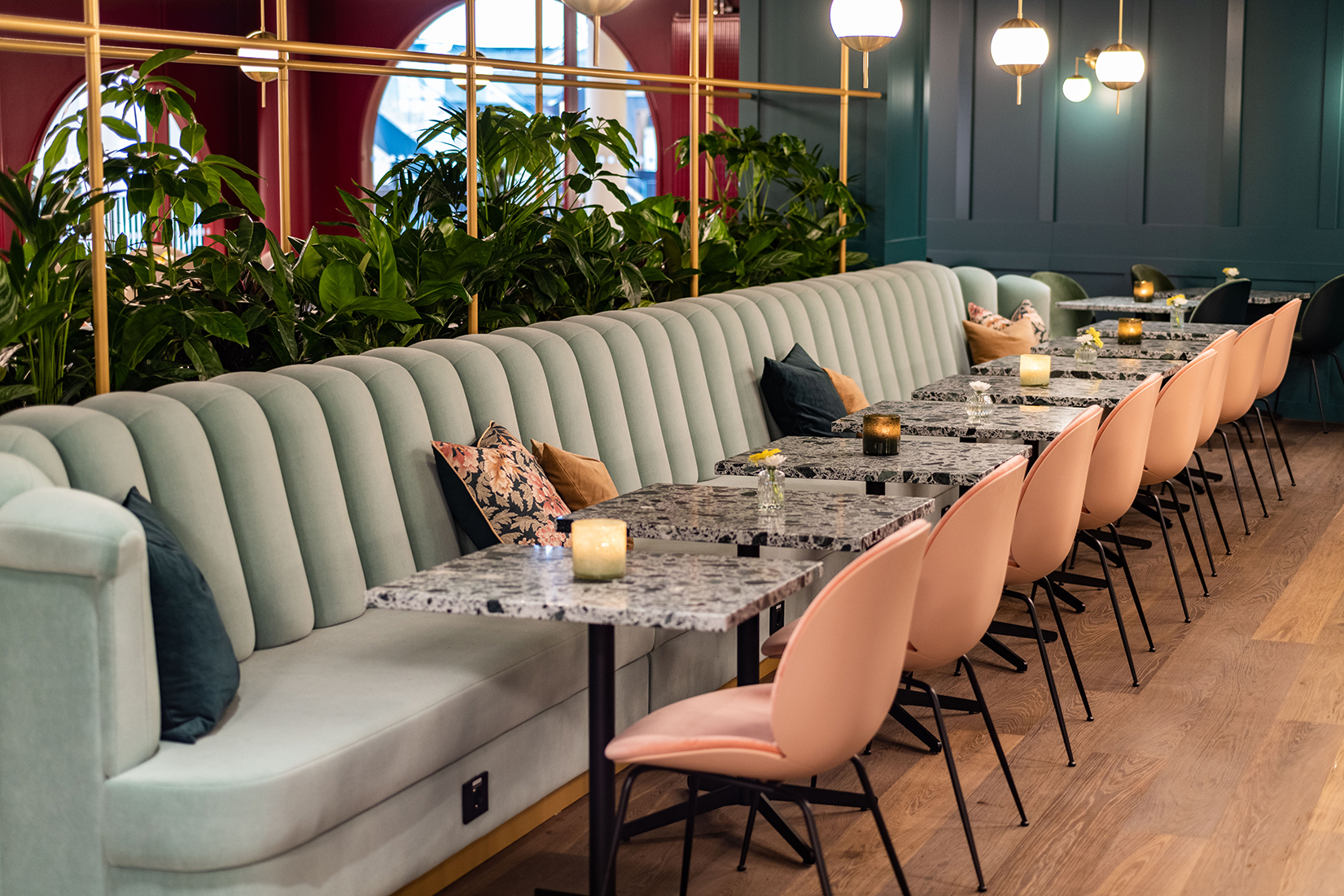 Funksjonene i paviljongen er offentlig tilgjengelige, samt et tilbud for kontorbrukerne. Dette markedsområde består av varierte kafeer og restauranter som serverer alt fra gourmetmåltider til Street Food og kaffe. De ni restaurantene har ulike konsepter og til sammen 1.100 sitteplasser. Her har vi hatt fokus på bærekraftige og funksjonelle løsninger av høy kvalitet, som skal tåle hard bruk i lang tid. Vi jobbet tett med kunde for å finne den optimale møbelpakken til det visuelle uttrykke de ønsket.