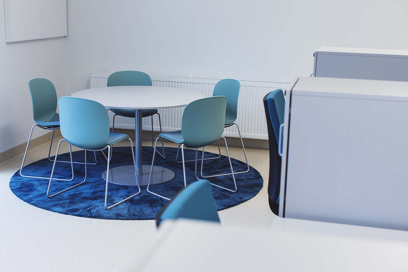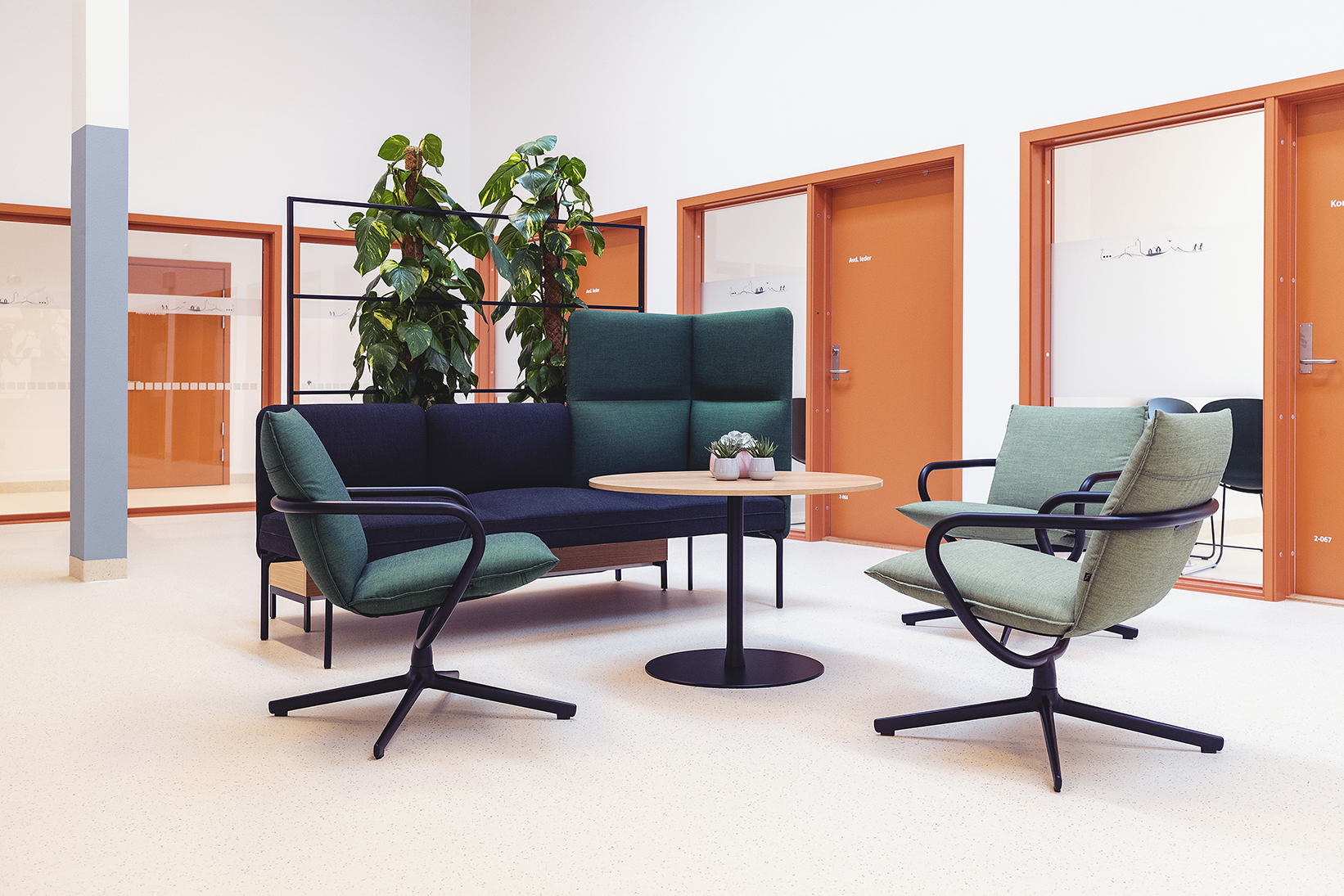 I dette prosjektet har vi hatt et veldig godt samarbeid med kunden om utarbeidelse av møbleringsplan og møbelutvalg. Senab Eikeland har innredet med møbler fra bl.a. Haugstad, VS, RBM, Vestre og Fora Form.