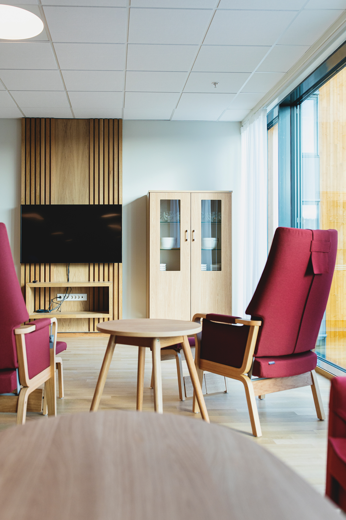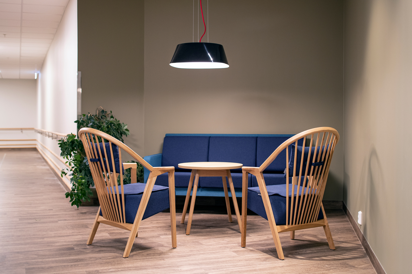 Senab Eikeland i Haugesund har levert helsemøbler, kontormøbler, konferansemøbler, sosiale soner, nattbord, knagger og hyller til baderom, lagerreoler, rustfrie traller og gardiner.