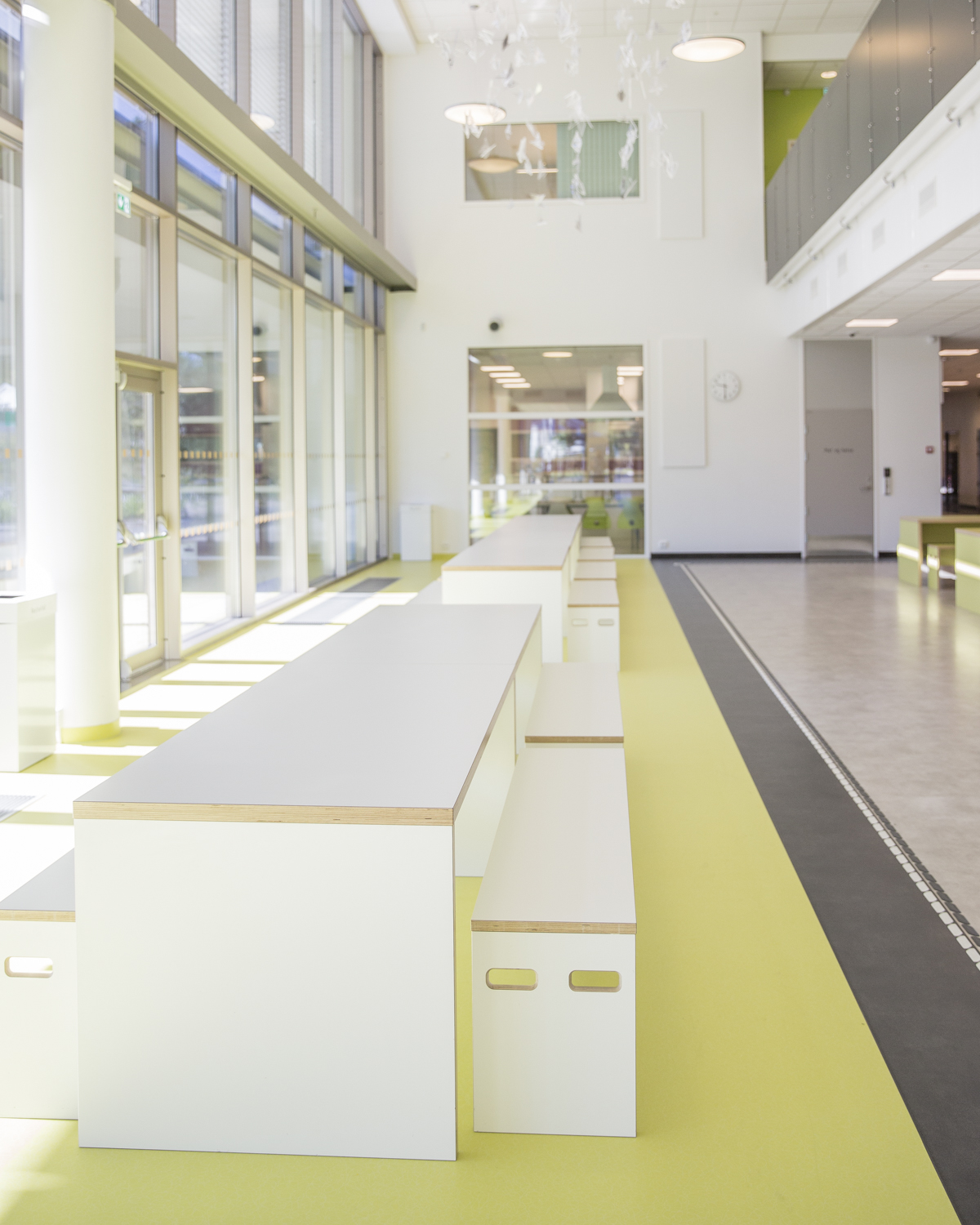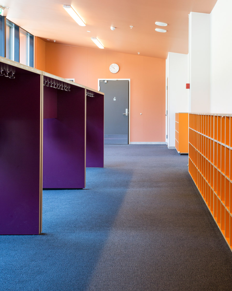 I tett samarbeid med Olaug Rabben og Jarl Bollmann Pedersen i Arendal Eiendom har Senab Eikeland Sør levert fast innredning og løse møbler til hele skolen.