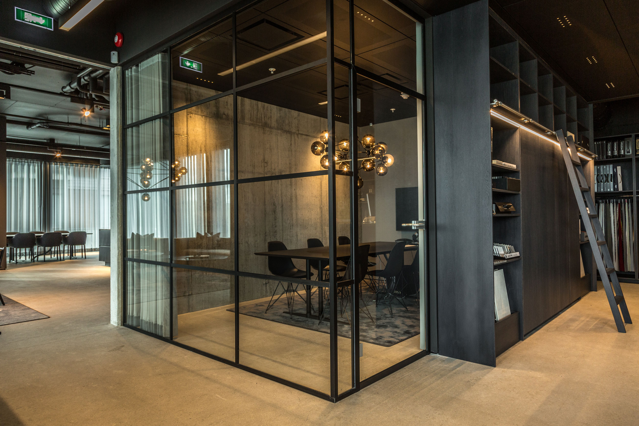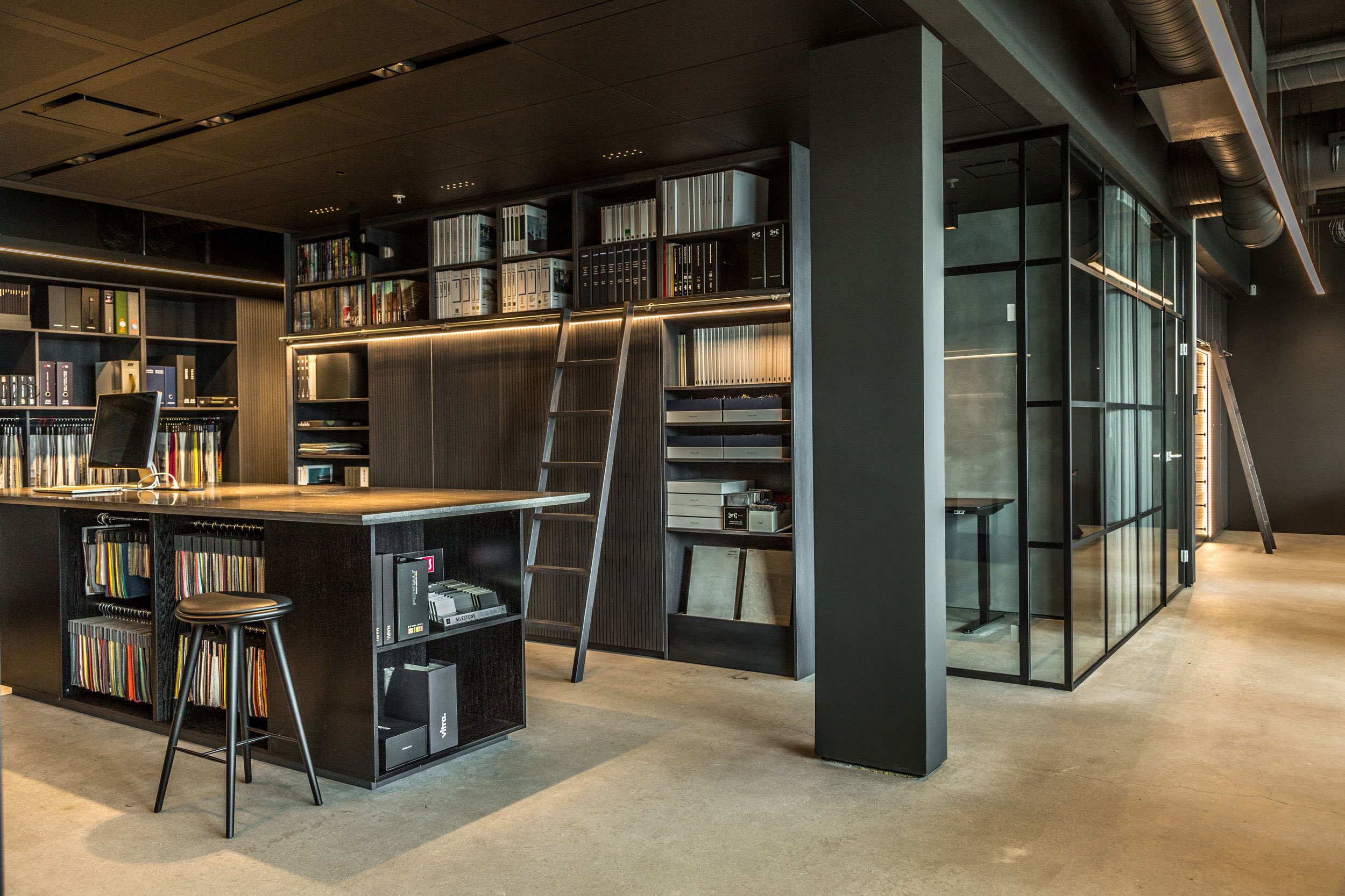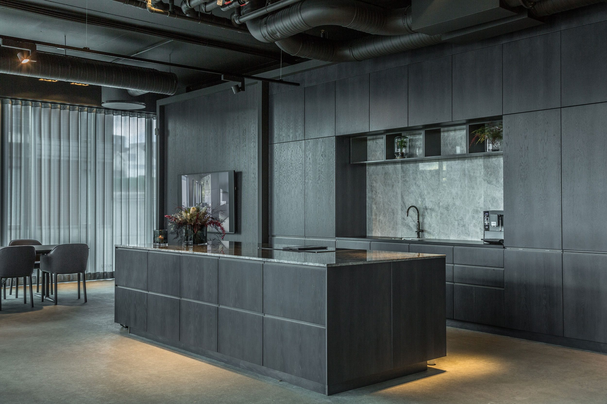Det var viktig å få vise frem deres fag i interiørkonseptet. Både materialer, belysning og møblering er en utstilling. Siden Magu Design overtok lokalene som rålokaler valgte de å lage en atmosfære som kombinerte varme og personlighet med røff industri. Utrykket har en enkel og luksuriøs stil, den er sofistikert og tidløs. Det er brukt mørke materialer og farger for å skape dybde og en tydelig identitet. Det er en kombinasjon av maskulinitet og femininitet. Marmor er brukt på benkeplater, vegg og i møbler. Sammen med sort skinn og myke tekstiler skaper dette en varm og kul atmosfære.