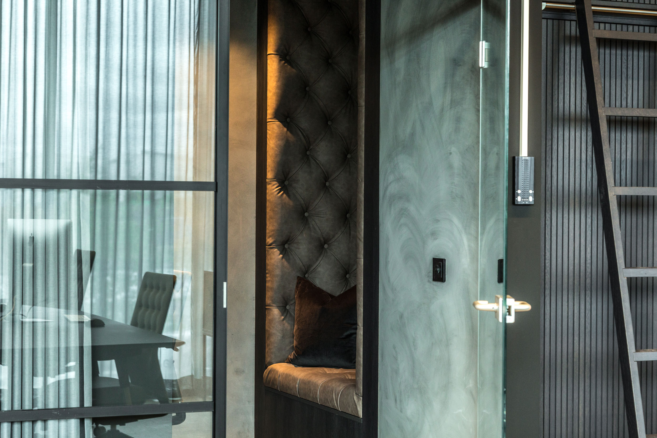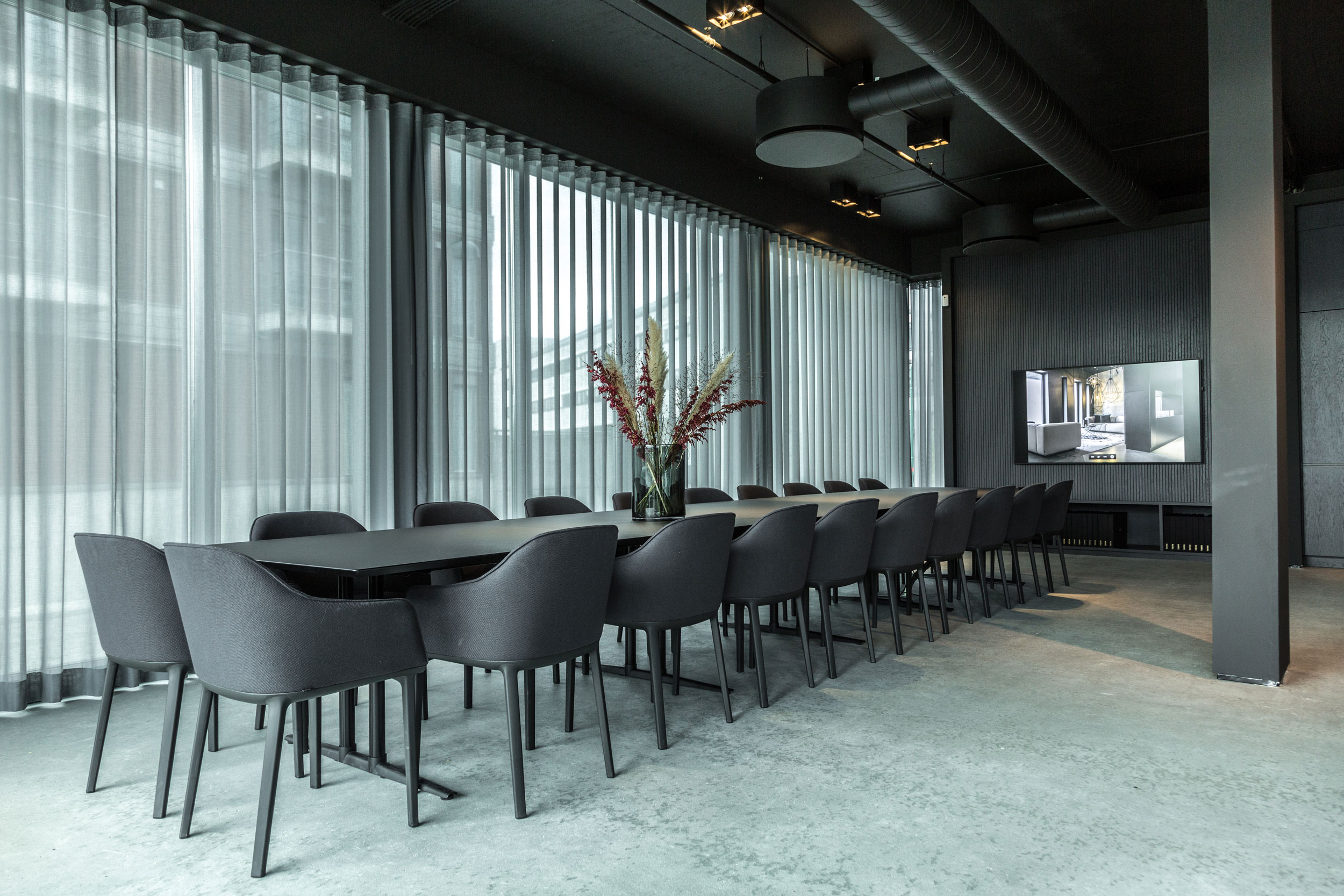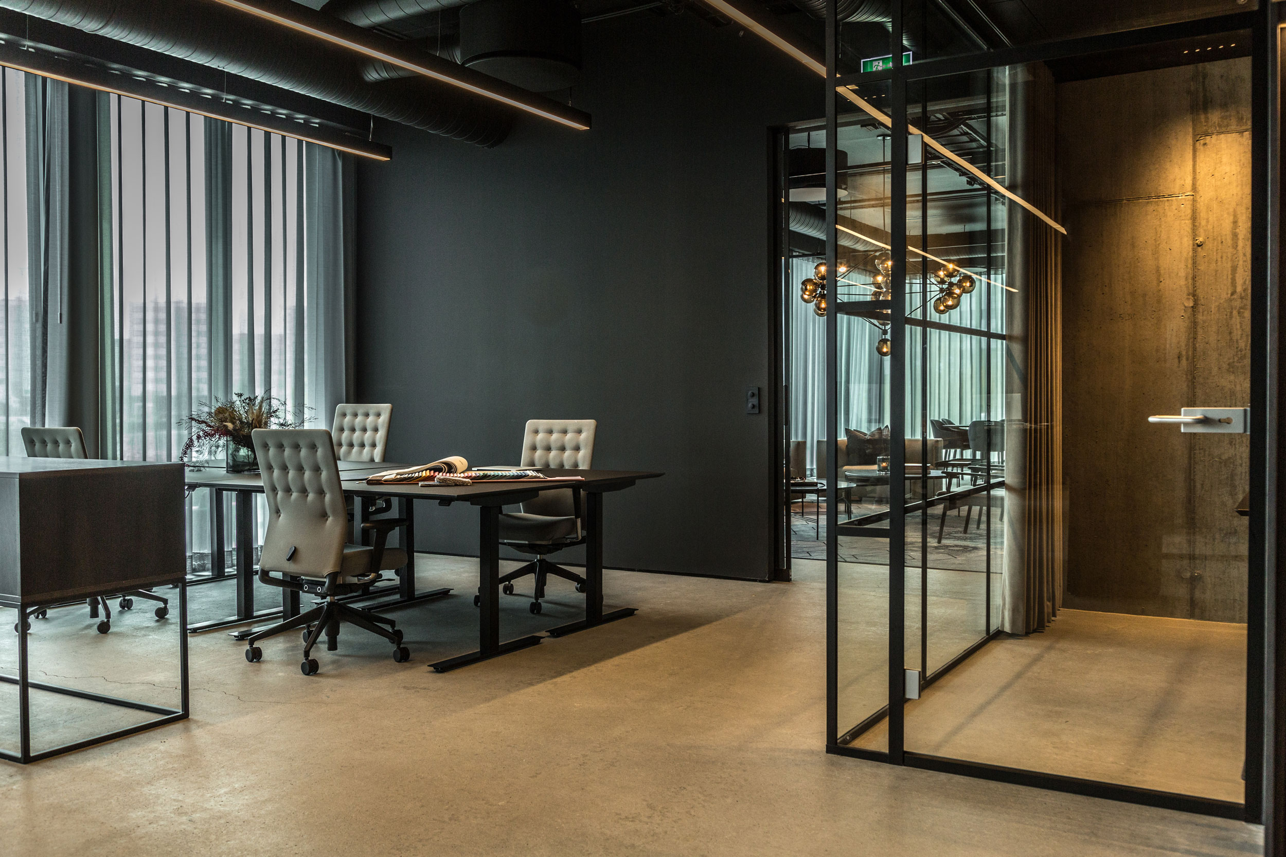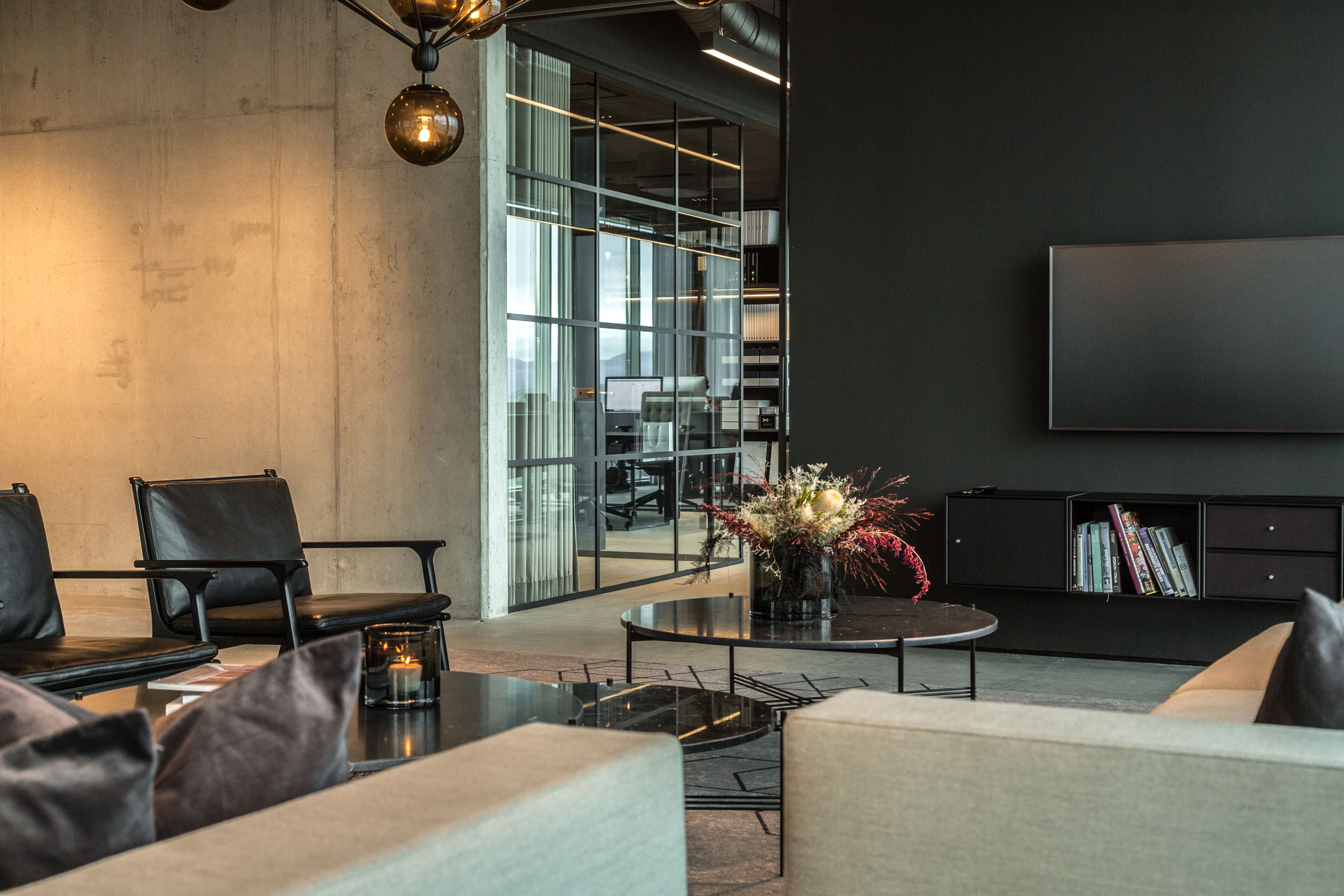 Det var viktig å få vise frem deres fag i interiørkonseptet. Både materialer, belysning og møblering er en utstilling. Siden Magu Design overtok lokalene som rålokaler valgte de å lage en atmosfære som kombinerte varme og personlighet med røff industri. Utrykket har en enkel og luksuriøs stil, den er sofistikert og tidløs. Det er brukt mørke materialer og farger for å skape dybde og en tydelig identitet. Det er en kombinasjon av maskulinitet og femininitet. Marmor er brukt på benkeplater, vegg og i møbler. Sammen med sort skinn og myke tekstiler skaper dette en varm og kul atmosfære.